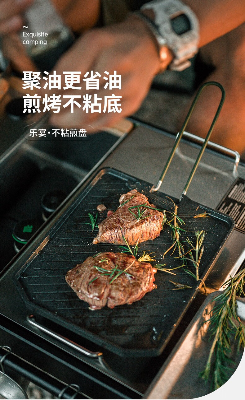 NatureHike挪客乐宴不粘煎盘户外露营烧烤盘卡式炉烤肉盘易清洗 黑色
