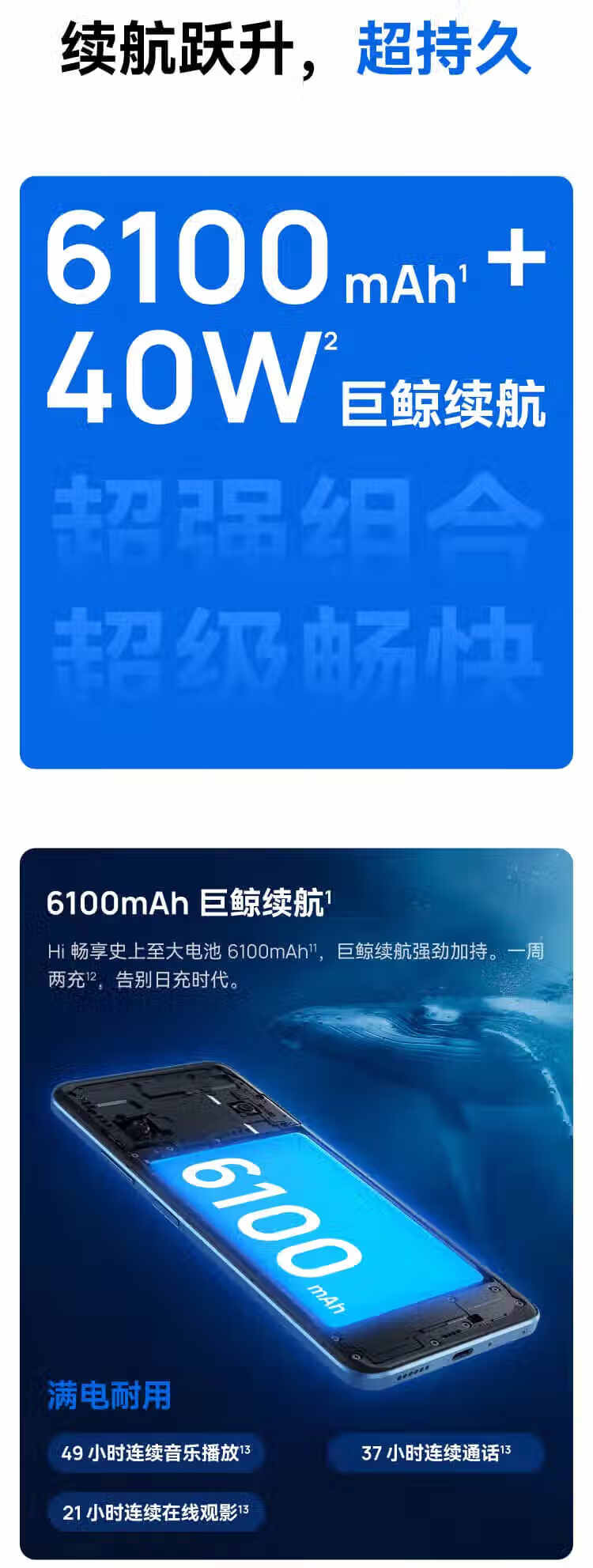 华为Hi畅享 70 Plus 5G手机 抗摔防水超耐用 6100mAh+40W巨鲸续航 Hi畅享 70 Plus冰晶蓝 12GB+256GB 官方标配+原封未激活+全国联保