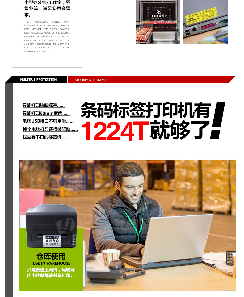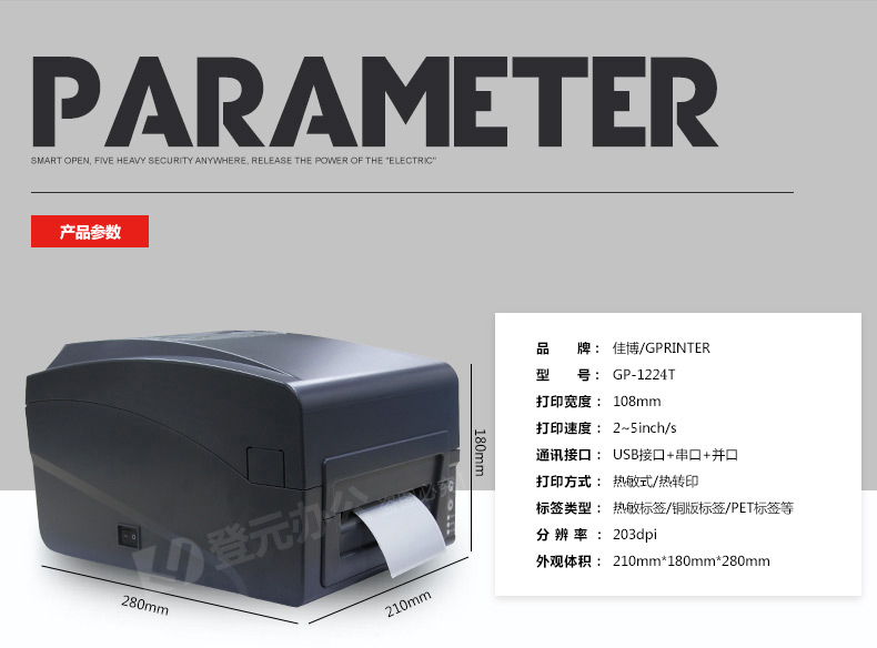 佳博(Gprinter) GP-1225T热敏/热转印条码打印机 标签机 电子面单打印机 1225T(标签纸碳带)
