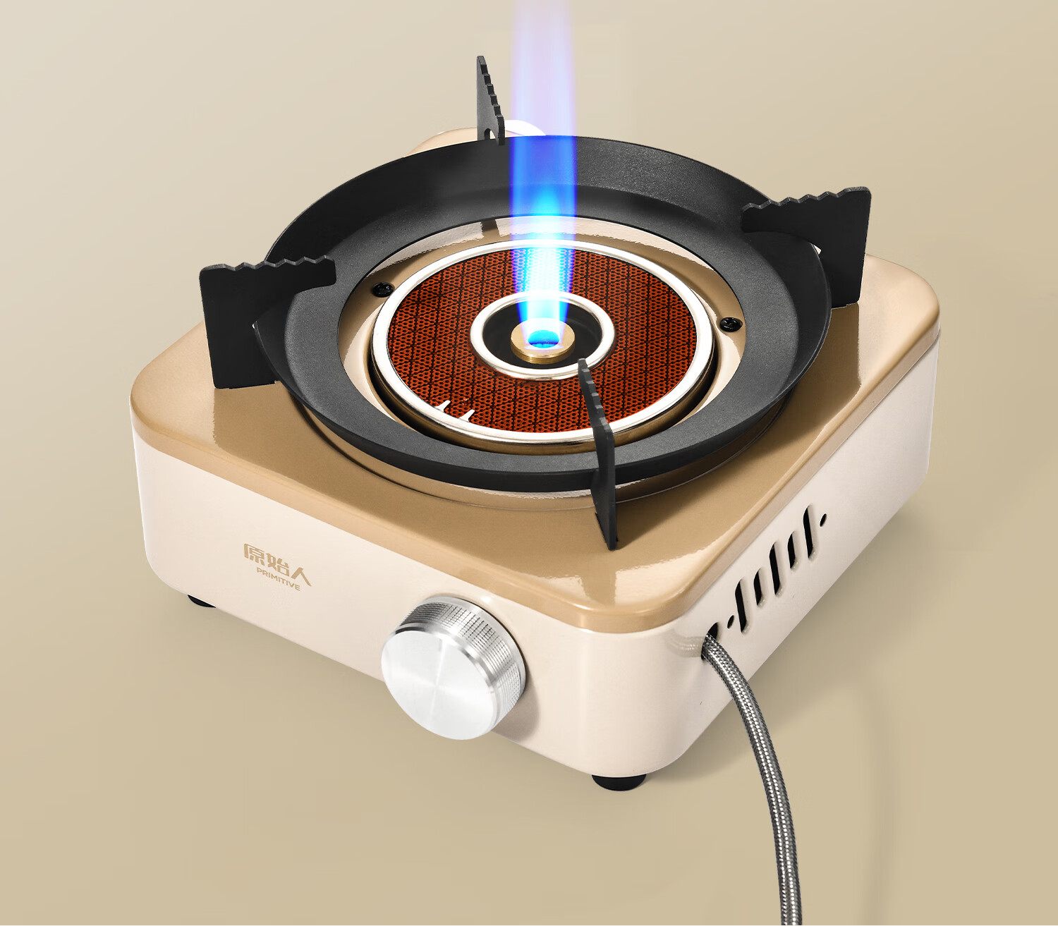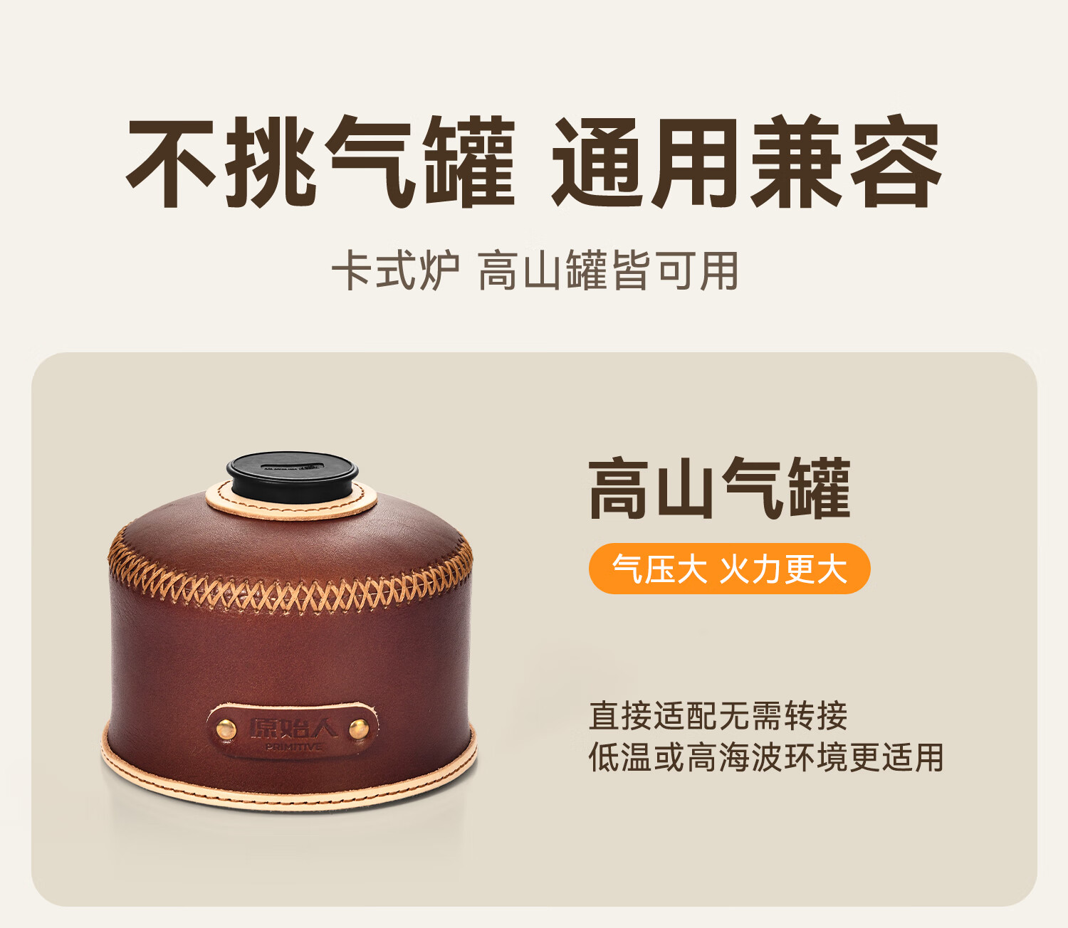 原始人(The Primitive)卡式炉户外便携式分体式炊具套装露营野外装备全套新款煮茶炉具 卡其色【带稳压】赠收纳包+转接头