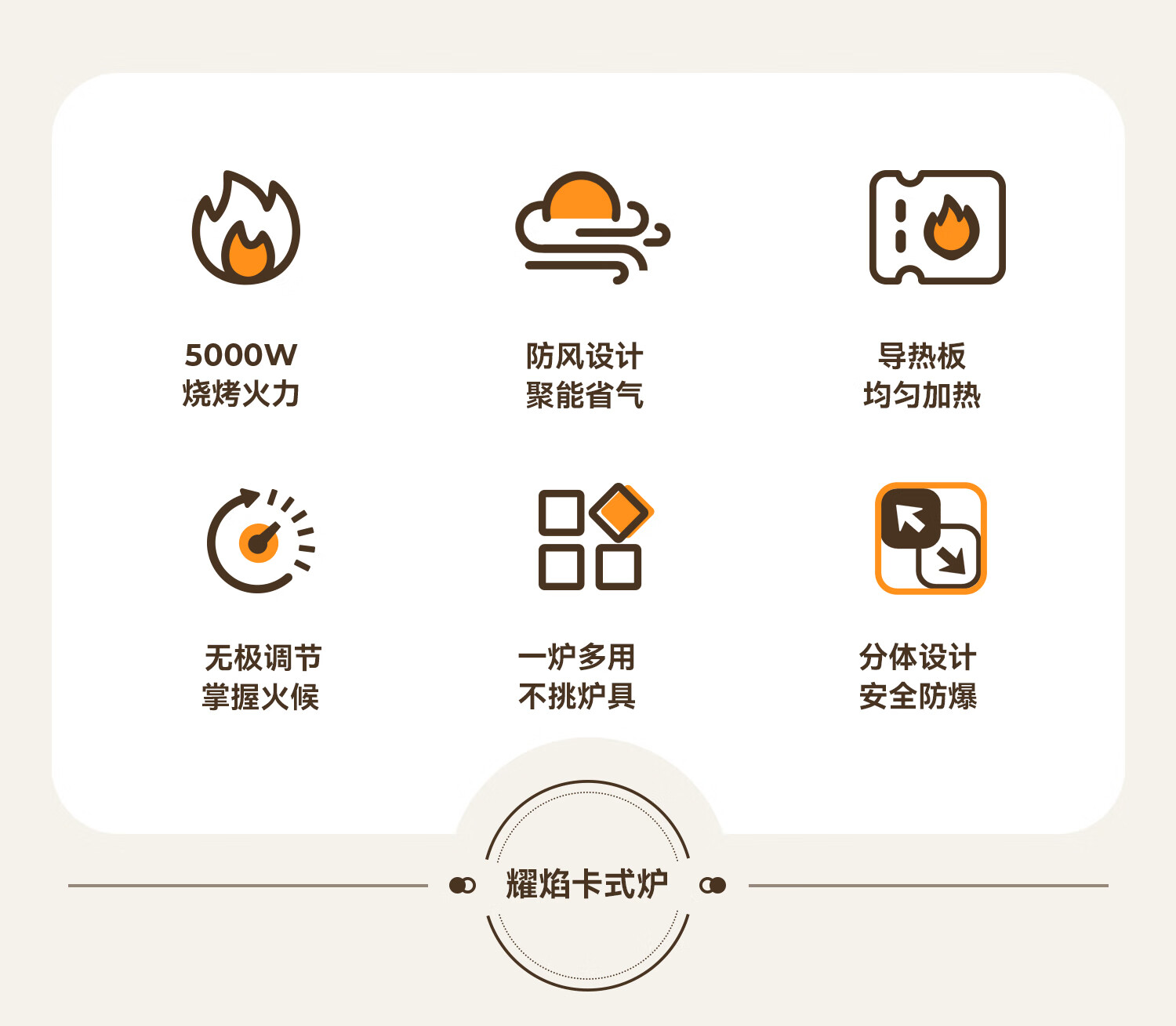 这个整体使用下来还不错,分体式设计,还有地方放气罐,安全最重要,看到卡式炉爆炸的真可怕,一定要买分体式的。能煮火锅也能烤肉真的太棒了。