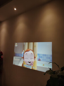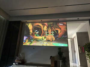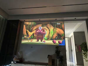 真的比想象的要好的多。一开始想选择电视的,后来了解这款投影仪。买回来看下。没想到那么清晰。直接大白墙,音质好比电影院。简直太爽了!!