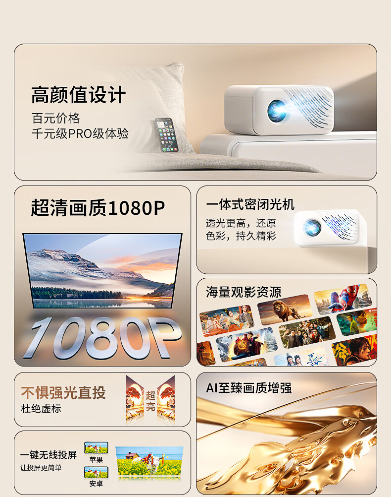 完全不输私人影院的视觉效果,操作也极其简便,开机速度快,功能非常实用,最主要的是商家还赠送免费的观影app,值得购买