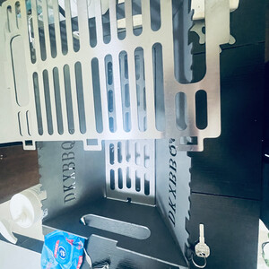 还没用过,反正用料挺狠,整备质量估计有10斤,袋收纳包,主要是有兜底隔板,铁子们,烧烤炉一定是有底板和灰板,这样才能上桌
