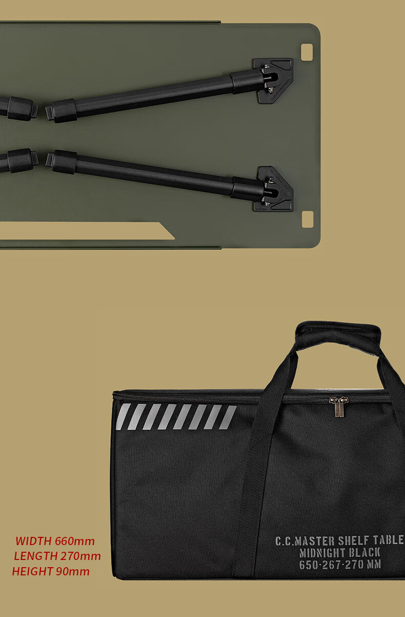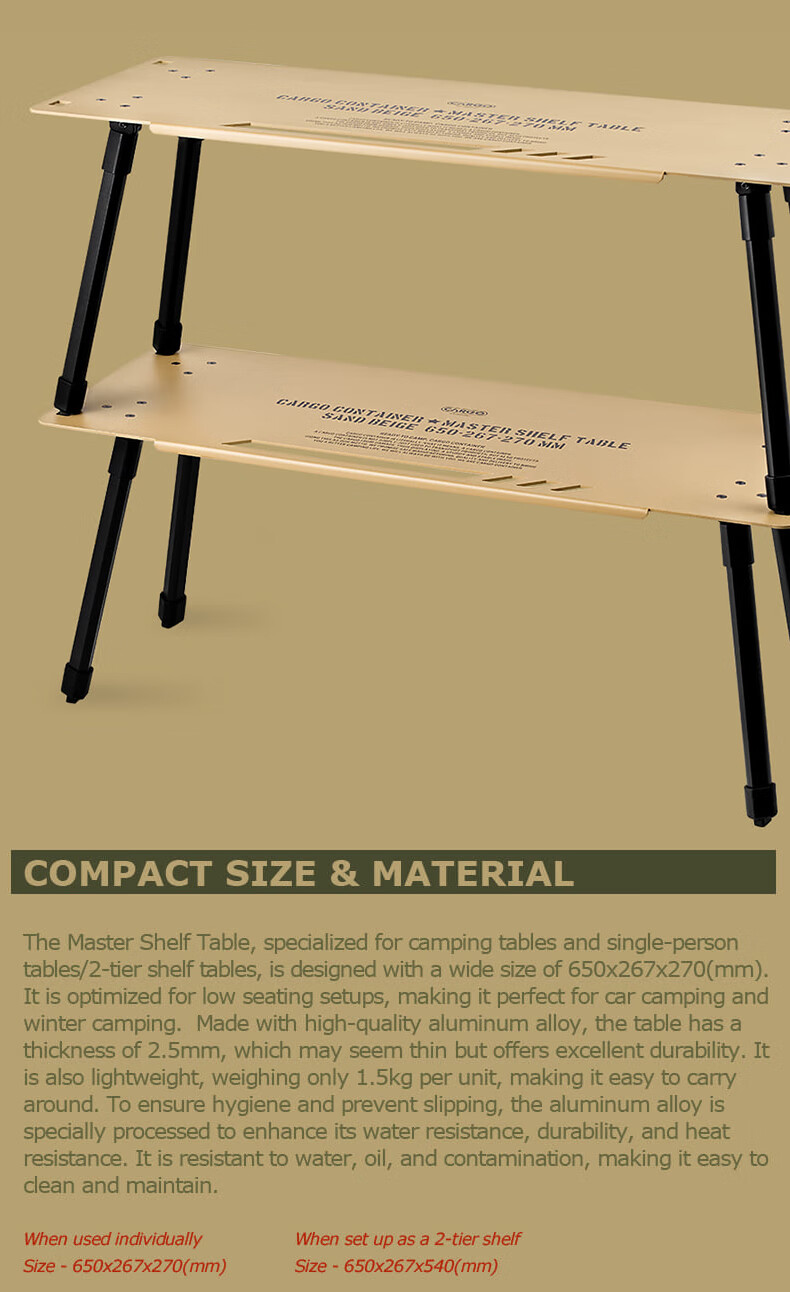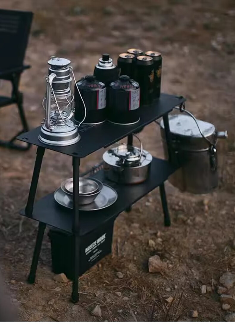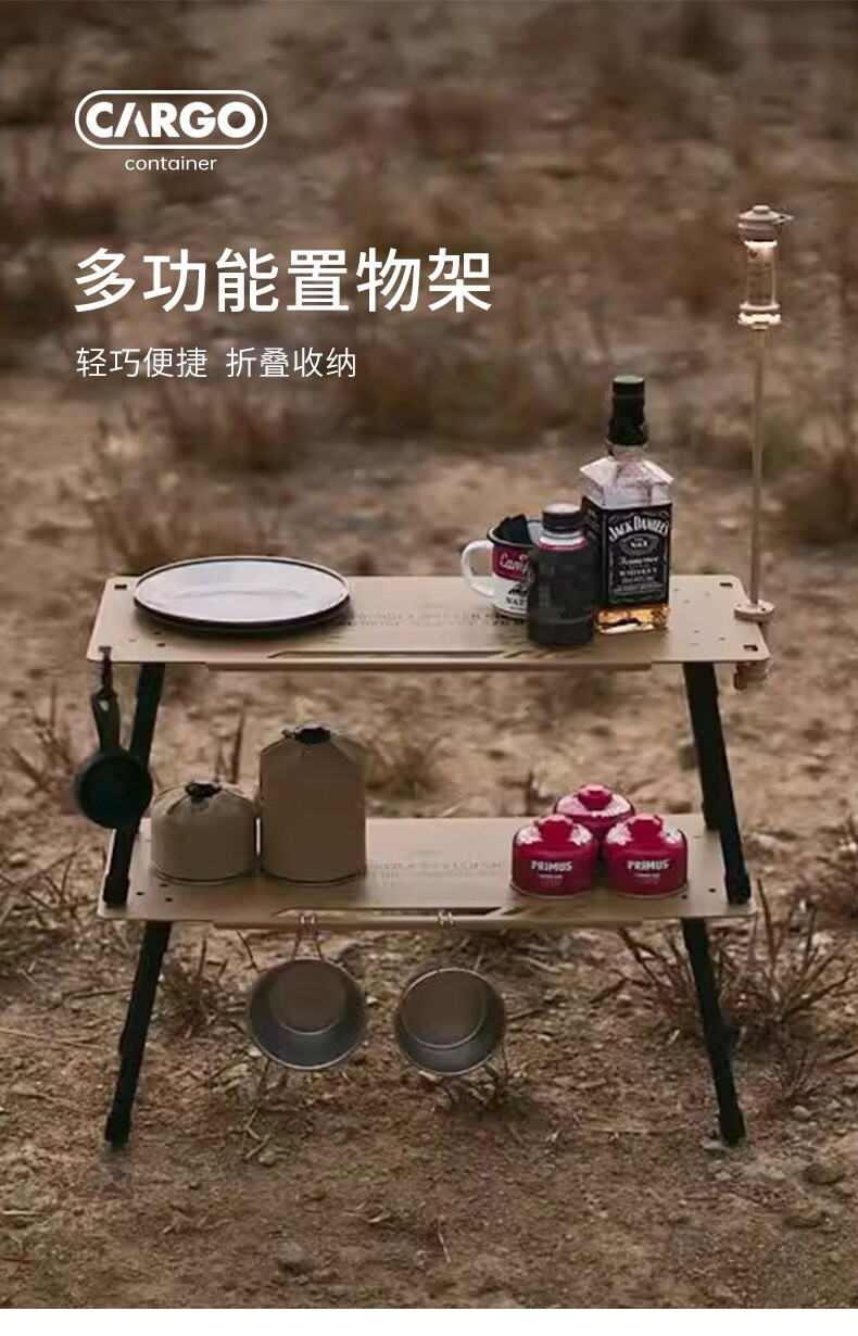 CARGO CONTAINER户外折叠置物架露营双层铝合金小桌子野餐装备战术围桌 黑色一组两个(65*26.7*27cm)