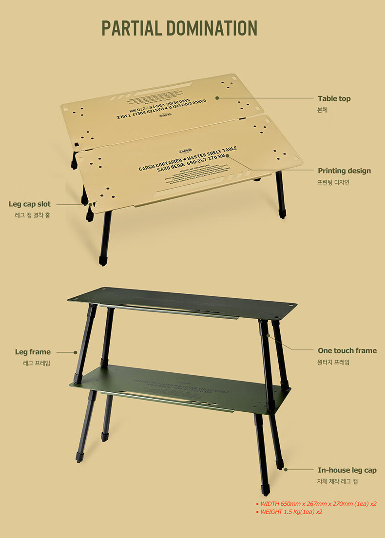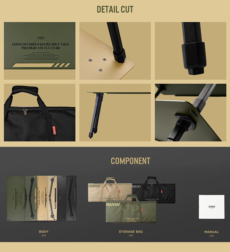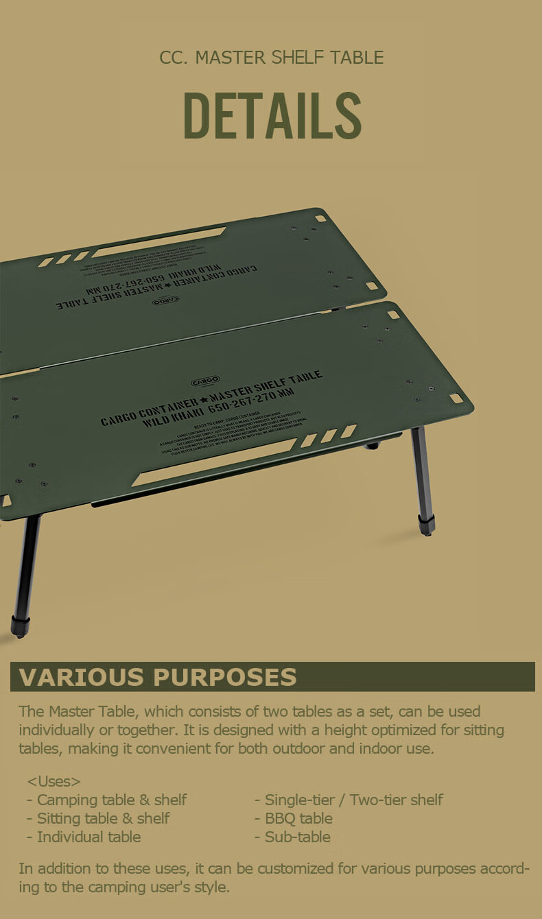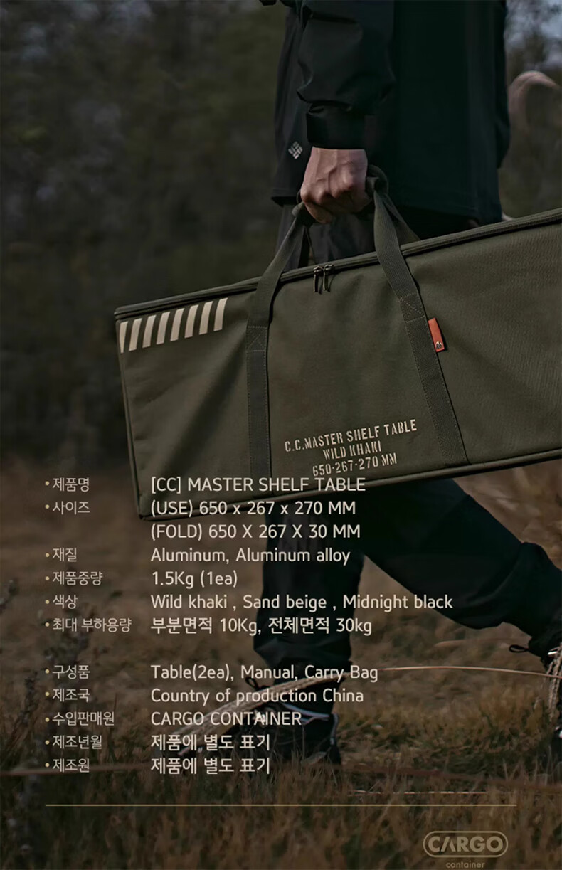 CARGO CONTAINER户外折叠置物架露营双层铝合金小桌子野餐装备战术围桌 黑色一组两个(65*26.7*27cm)