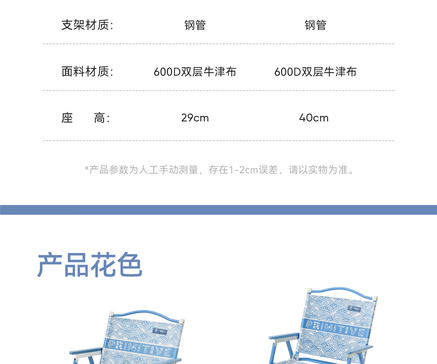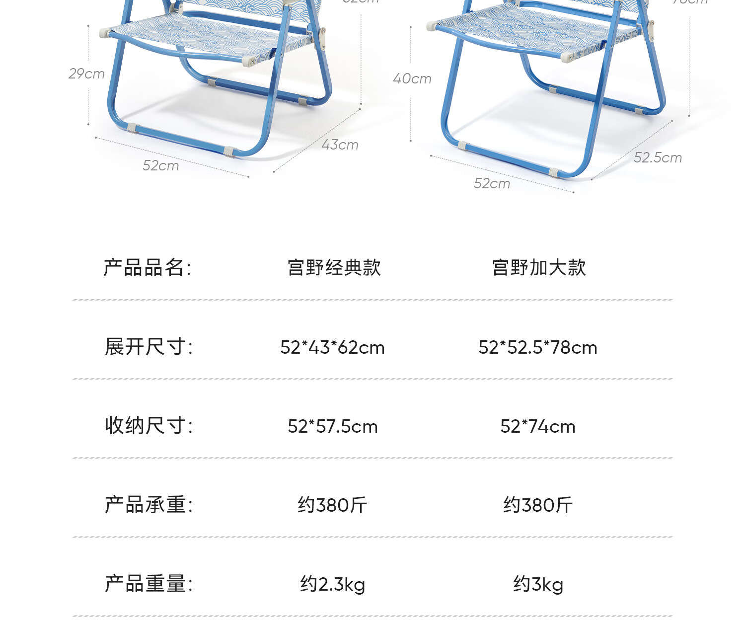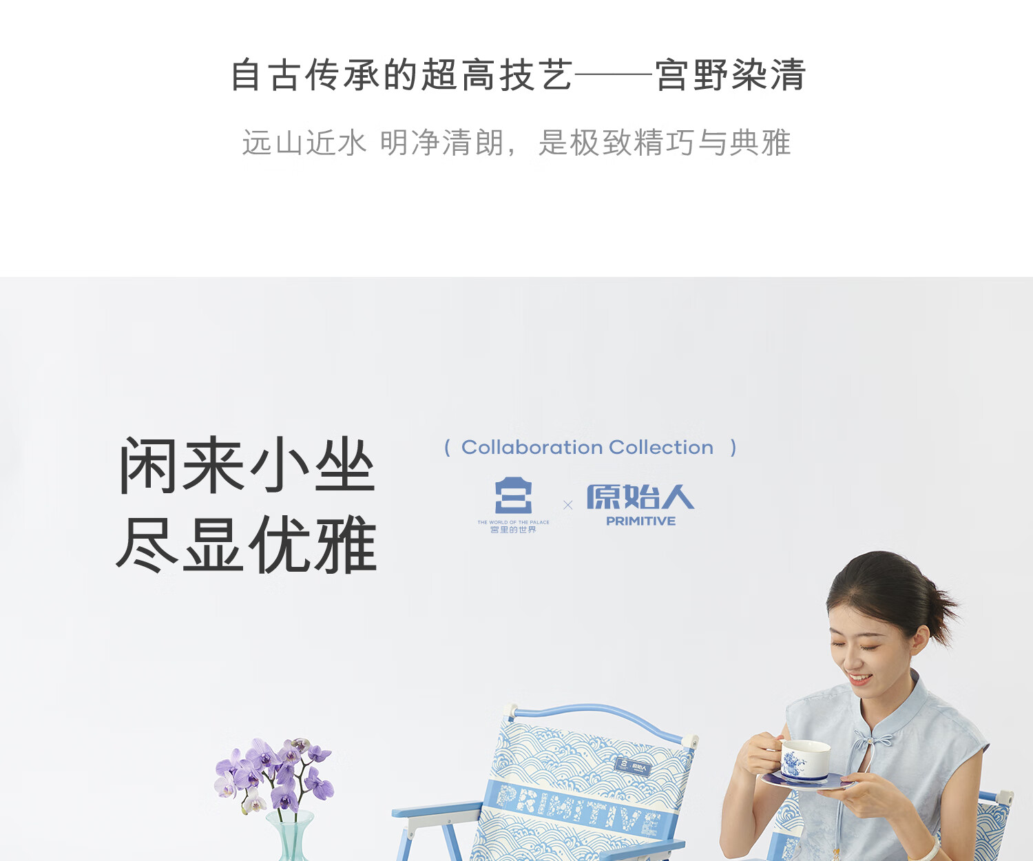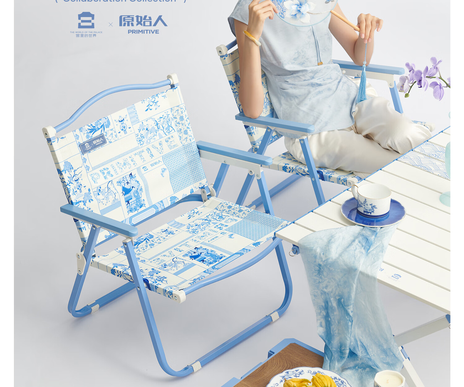 原始人户外折叠椅子露营克米特椅野餐椅便携桌椅沙滩椅钓鱼椅子故宫系列 【宫廷国风-染清】经典款