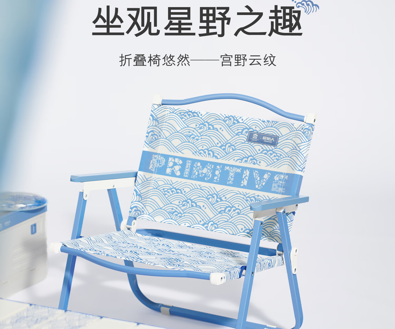 原始人(The Primitive)便携户外折叠椅露营克米特椅野餐椅故宫系列椅沙滩椅露营椅子 【宫野云纹】经典款