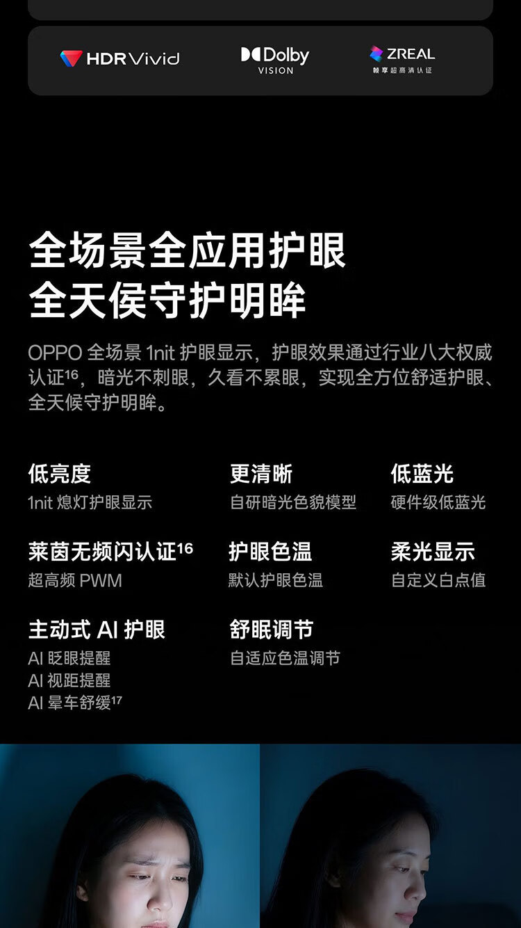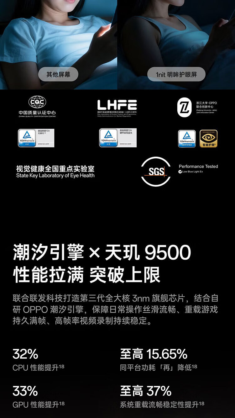 德国莱茵护眼;LTPO屏幕;高频PWM调光