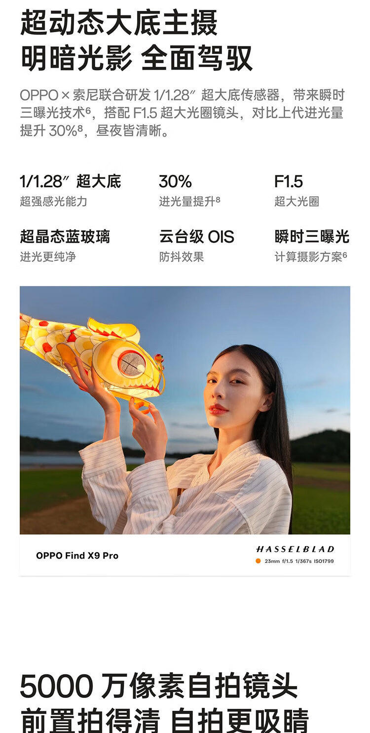 OPPOFind X9 Pro 旗舰手机 哈苏2亿超清长焦镜头 超动态大底主摄 霜白 12+256G 官方标配
