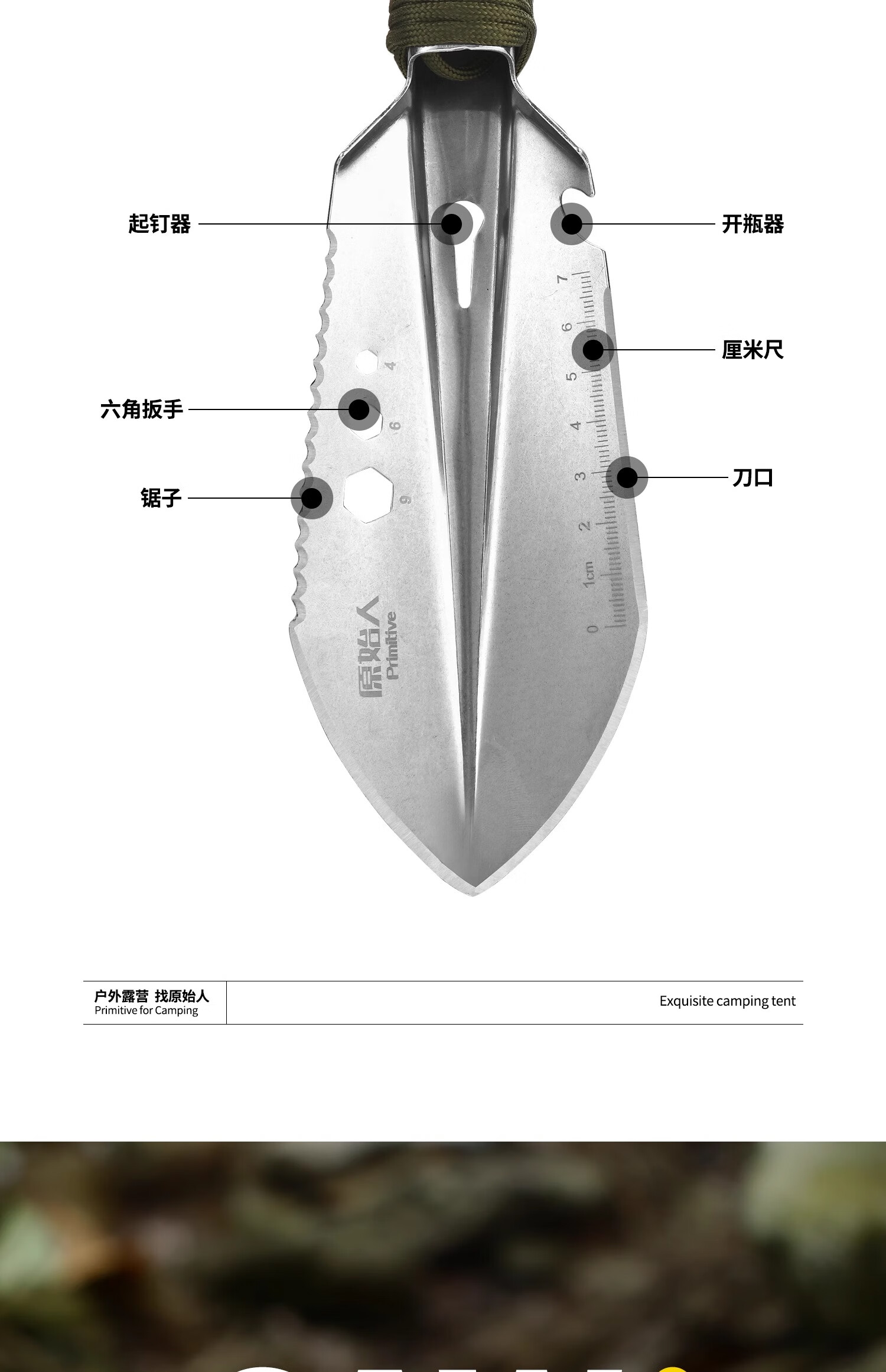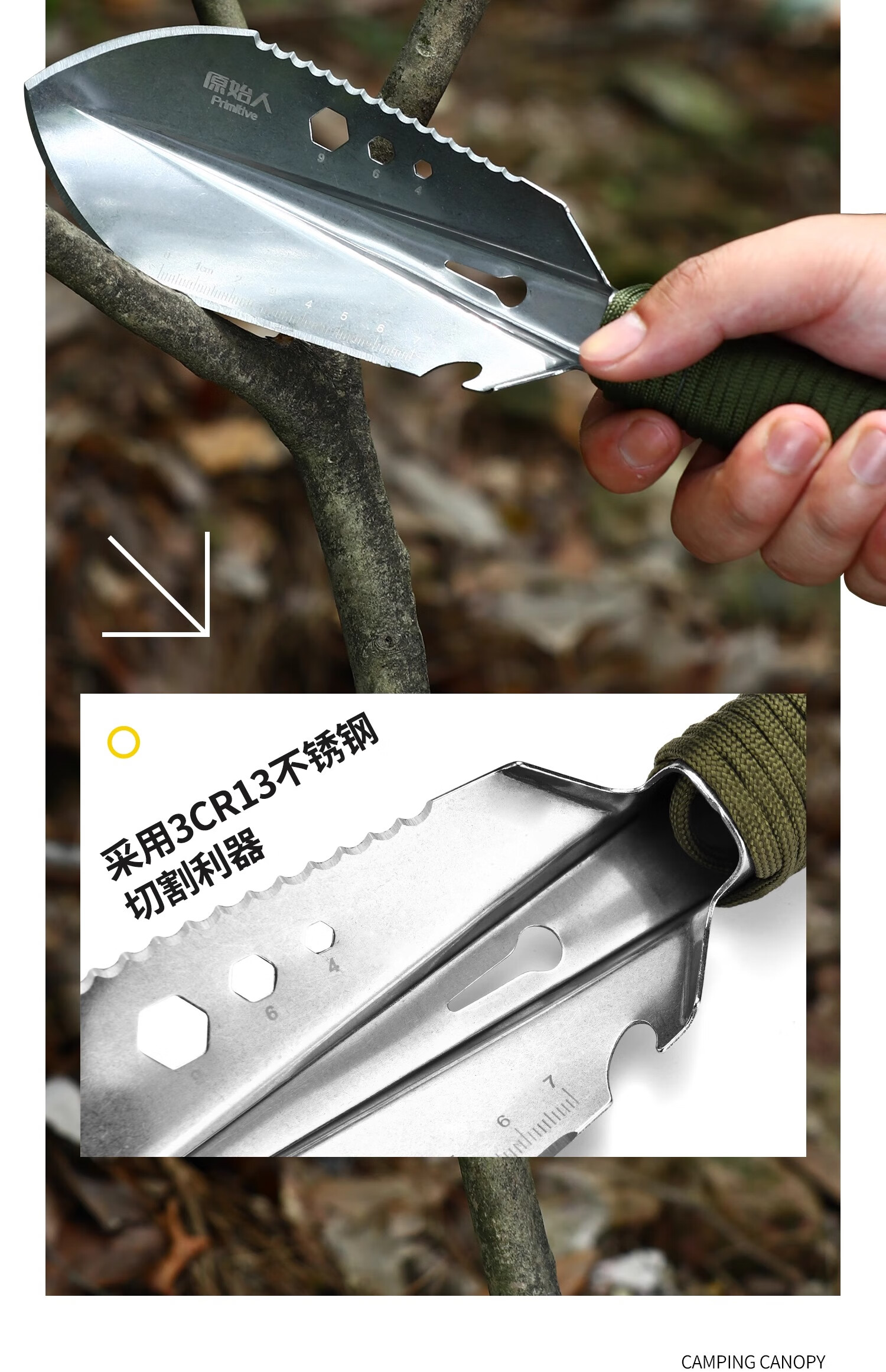 原始人户外工兵铲多功能小号兵工铲便携小手铲子铁锹野外生存装备