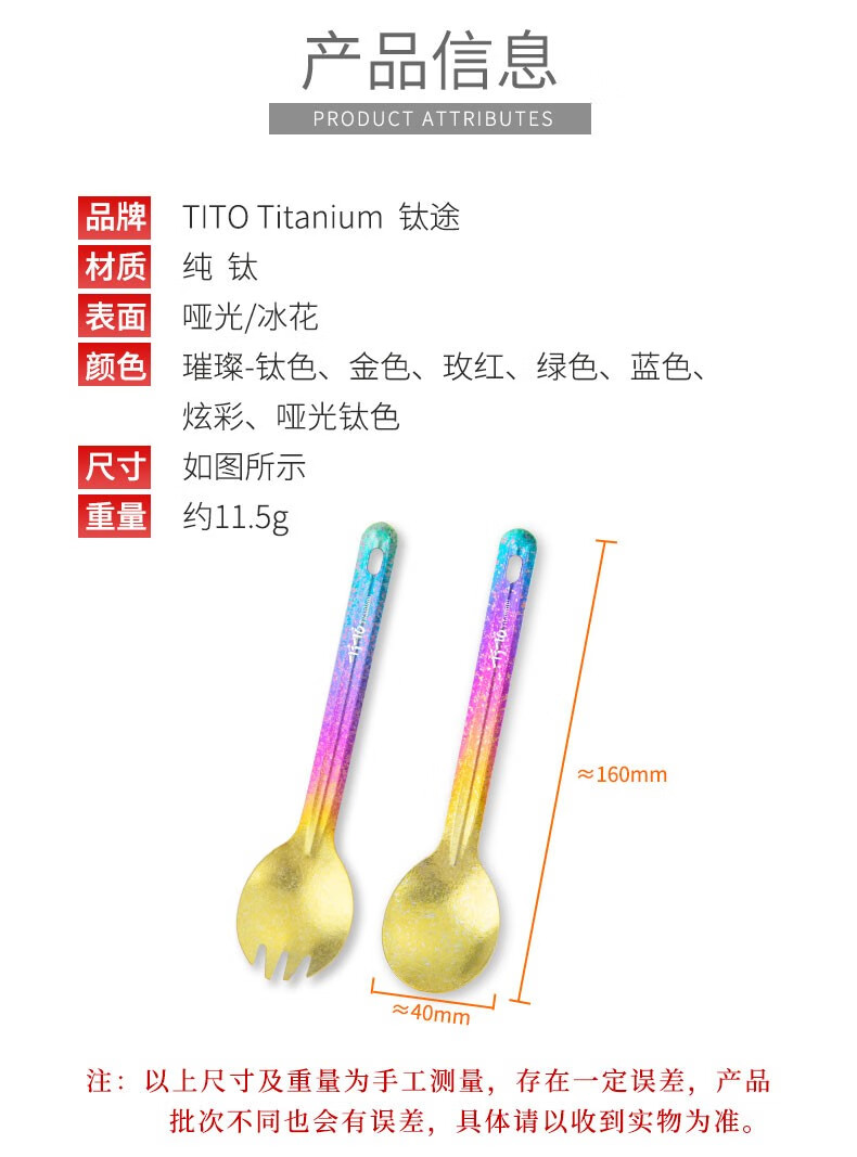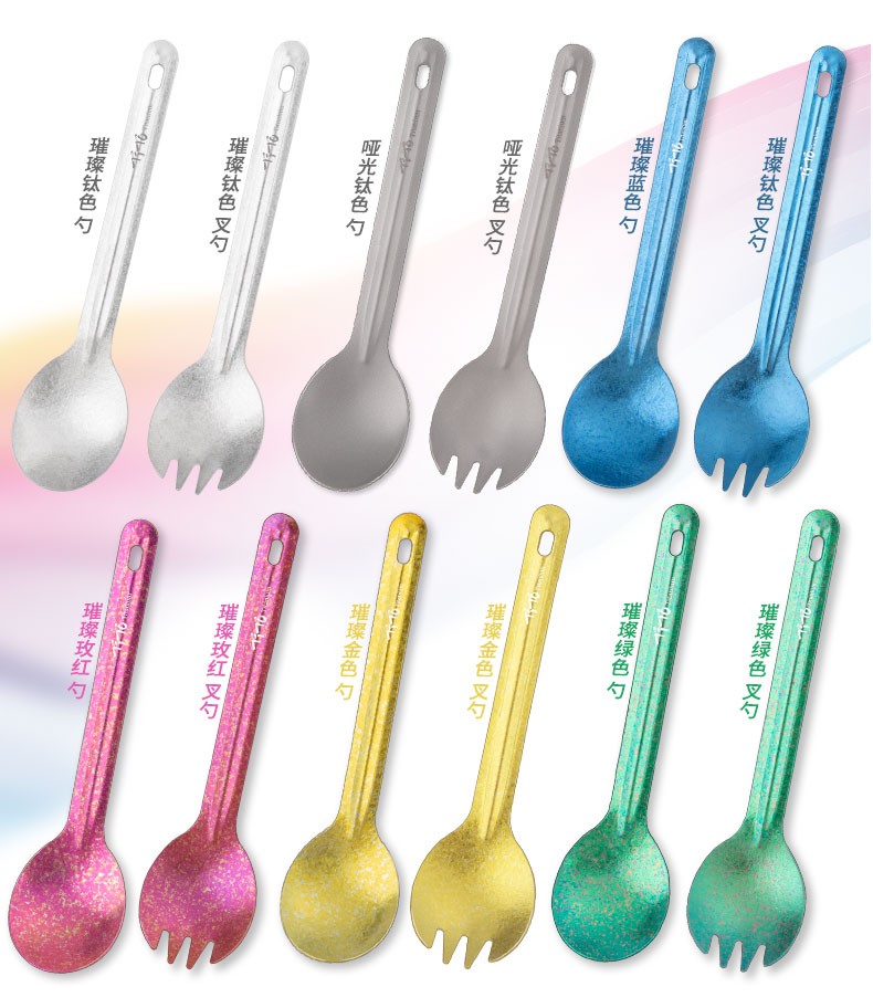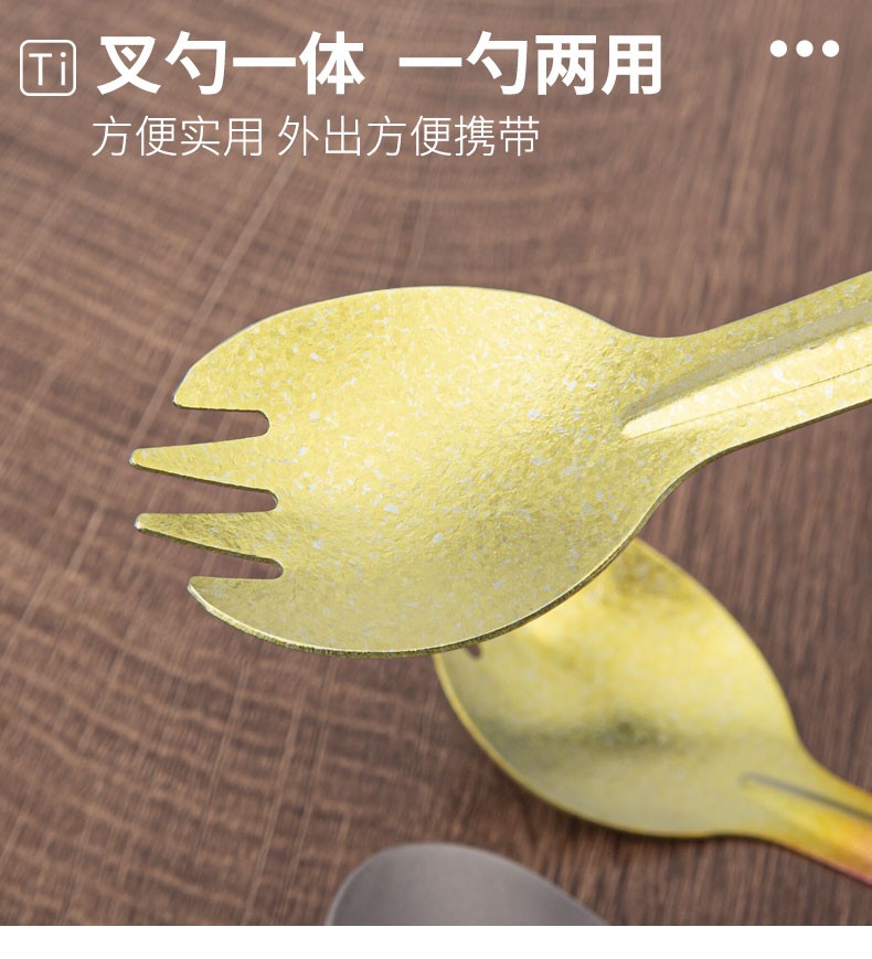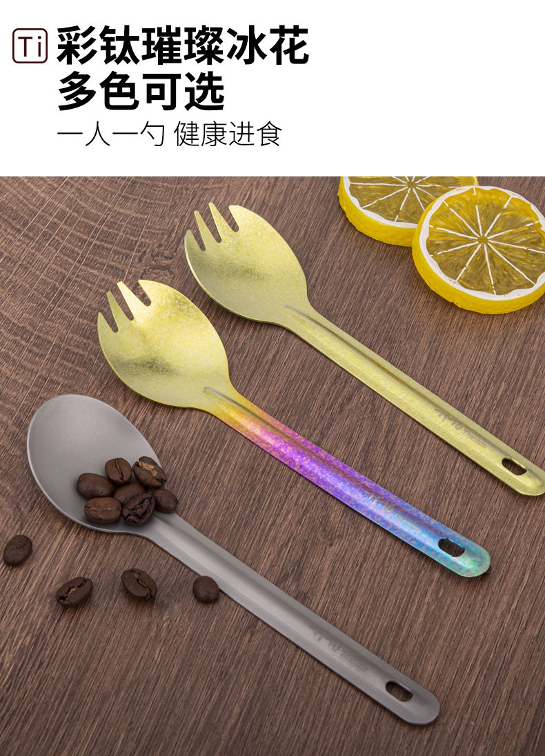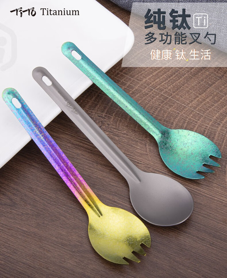 钛途(TITO TITANIUM)纯钛叉勺0.8mm99.5%钛合金家用户外野营餐具厨具叉子勺子 暮光冰花璀璨炫彩-钛勺