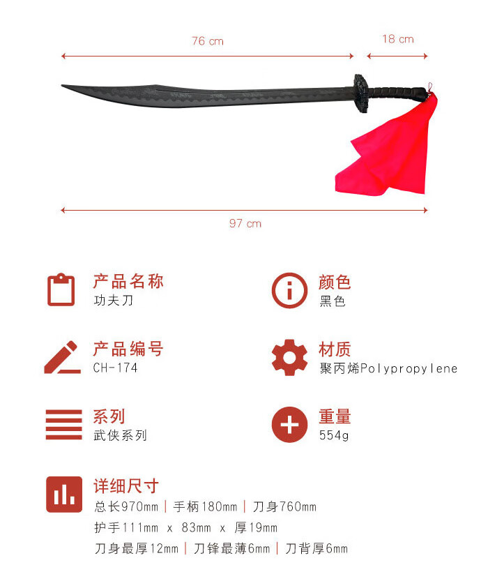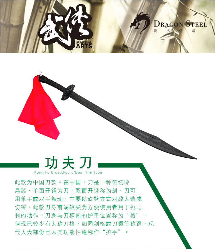 COLD STEEL龙裕 塑钢抗战大刀户外武术训练红军防身自卫中国制造终身质保 塑钢抗战大刀