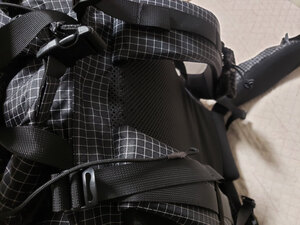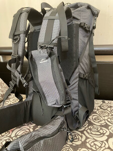 材质摸起来很不错,不过还没有被雨淋测试过;外挂方便,左右、上下都可挂;可扩容很nice,可小可大;背负系统可紧贴腰部,使背部和包有间隙,背起来应该不会热;底部防雨袋可收纳。唯一的小遗憾是侧面没有拉链方便取东西。