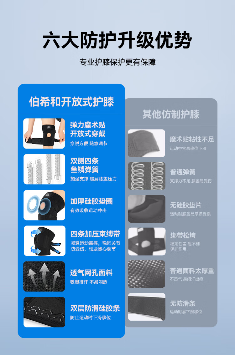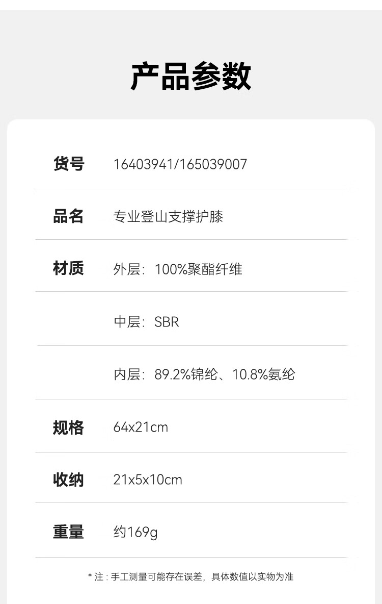 有弹力,效果好,支撑力强,下山时佩戴能较好的保护膝盖,