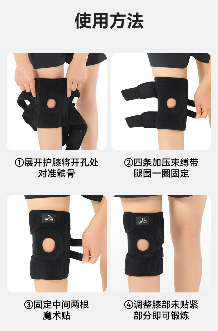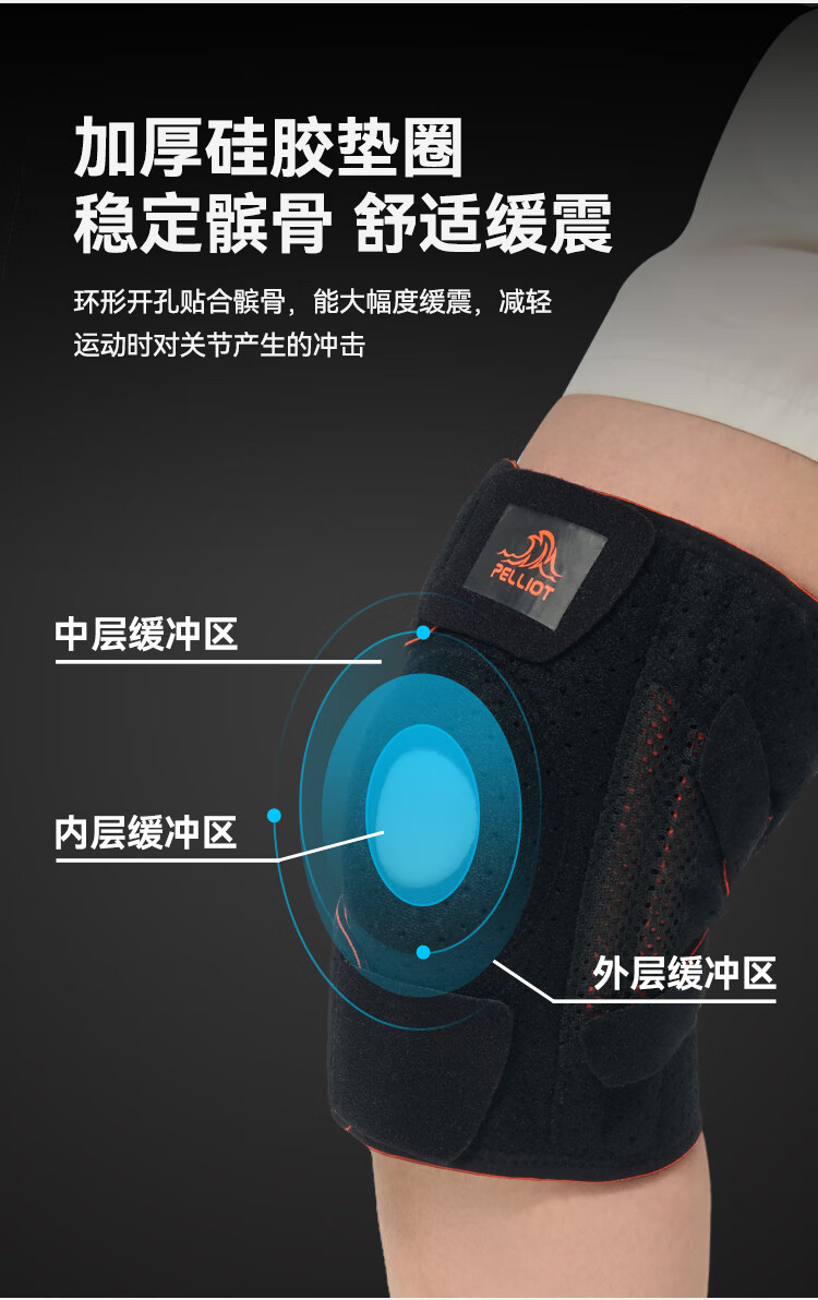 伯希和户外登山护膝篮球徒步骑行专业护具髌骨保护带防撞护膝【单只装】 曜石黑【单只装】