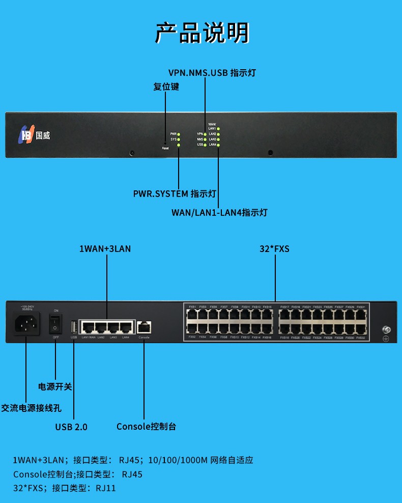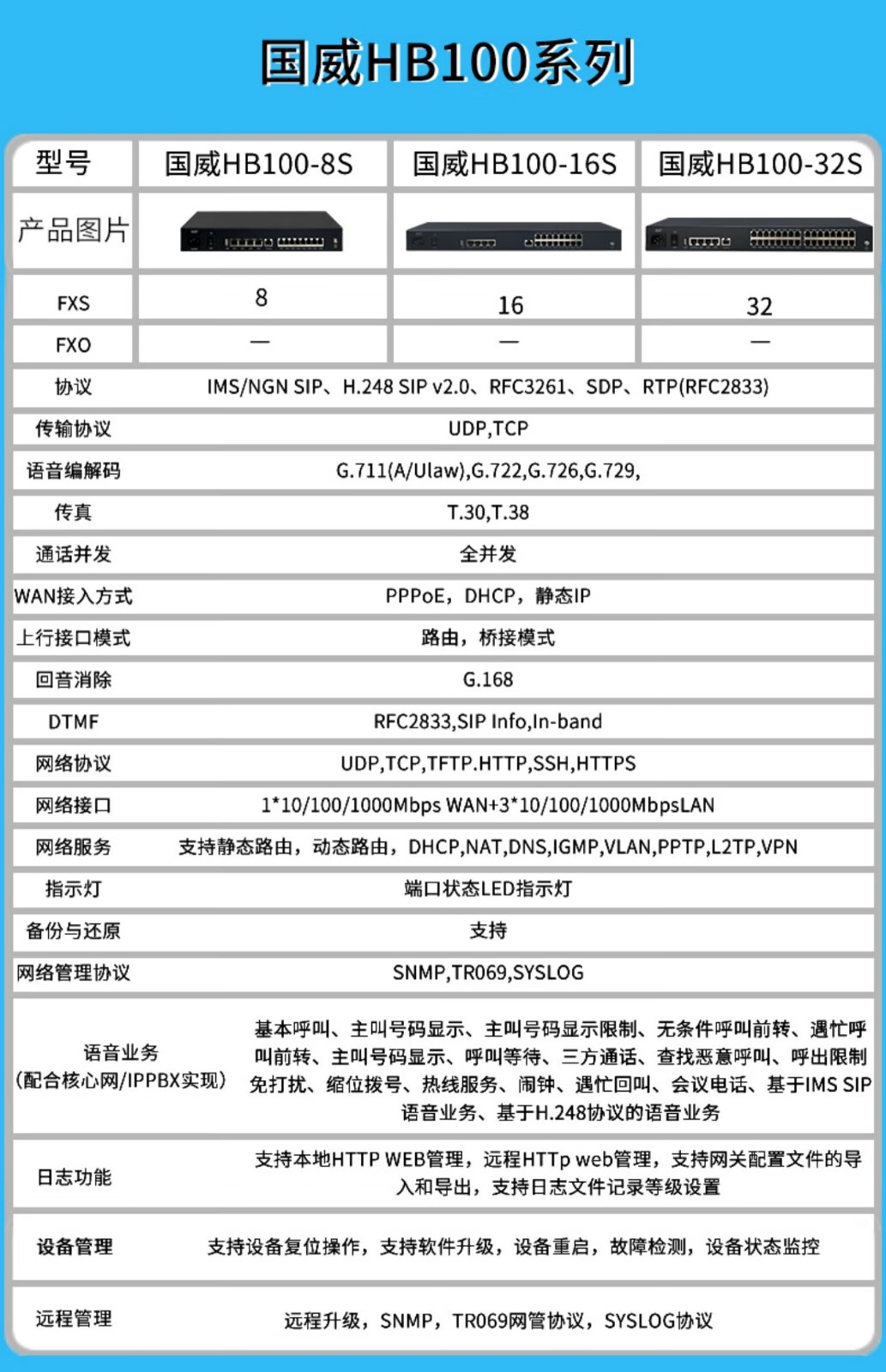 国威HB100电话交换机IP语音网关 网络电话 SIP协议 IAD网关 SIP转模拟电话分机接口扩展FXS语音网关 HB100-8FXS内线分机扩展