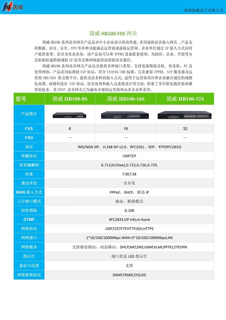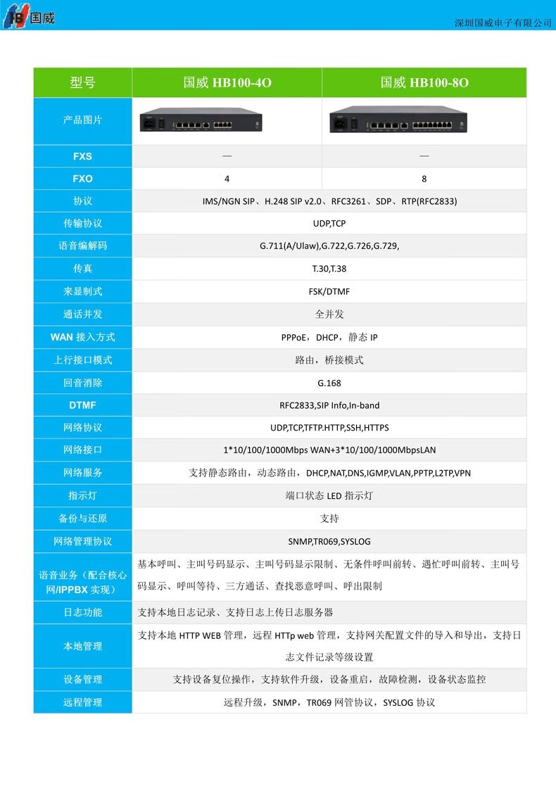 国威IAD语音网关 IP网络程控电话交换机内外线扩展SIP网关HB100-8FXO FXS网络扩展 HB100-8FXO外线扩展