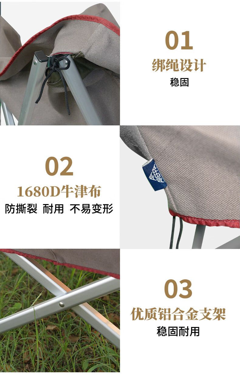 AREFFA铝合金户外折叠桌椅公园高背海狗椅露营沙滩椅子野餐便携轻便091 【军绿色】高背海狗椅 太空灰管
