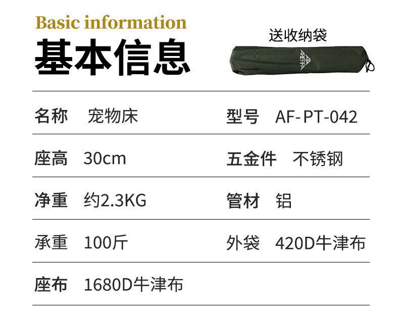 AREFFA Areffa户外折叠床动物床可拆卸床露营稳固耐用防潮宠物床 宠物床 PT-042