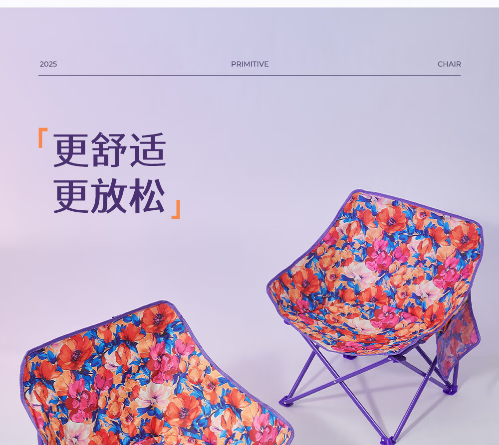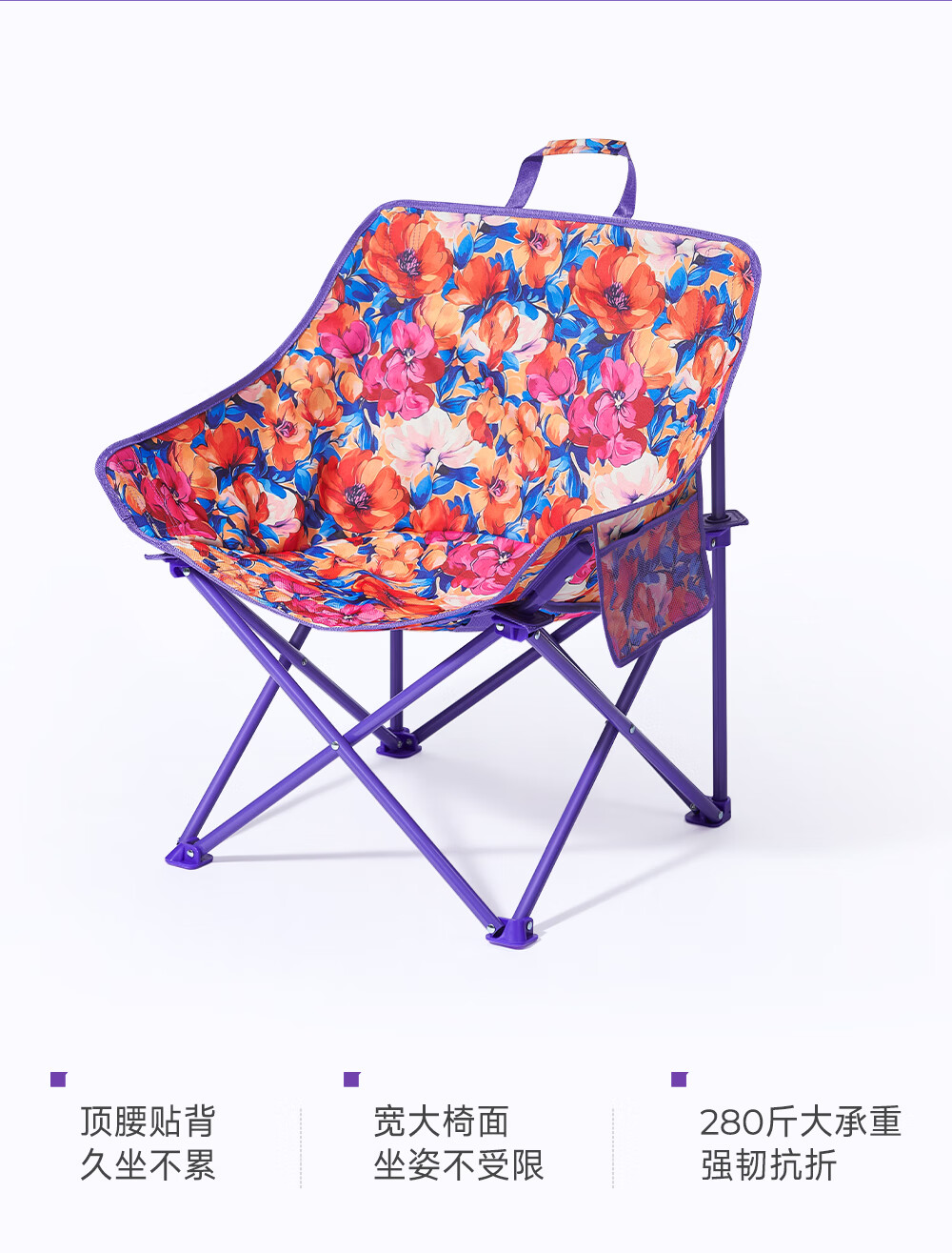 原始人(The Primitive)月亮椅户外折叠椅躺椅露营椅子桌椅沙滩椅便携躺椅野餐钓鱼椅凳 软包设计师限定款亮紫色-赠收纳袋