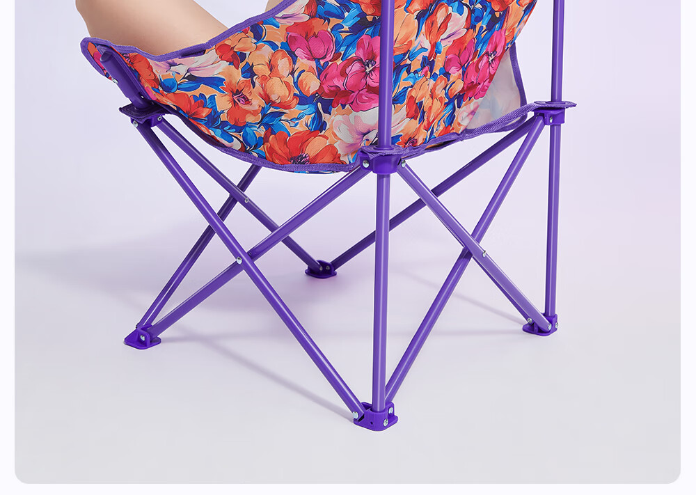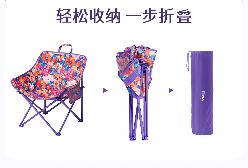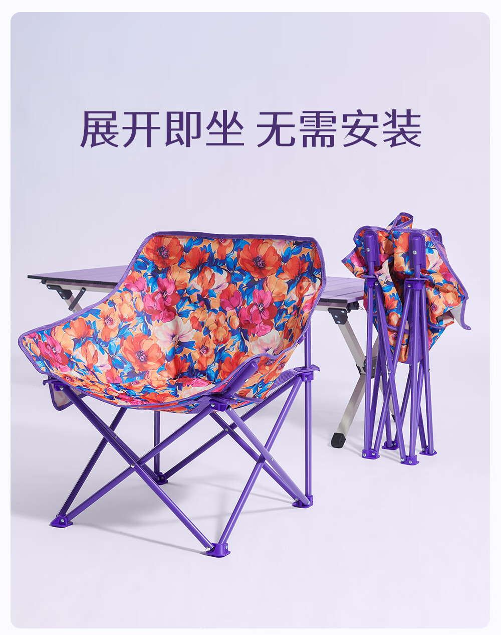 原始人月亮椅户外便携折叠椅露营椅子沙滩椅躺椅野餐装备野营钓鱼椅凳 软包设计款亮紫色-3重织带加固