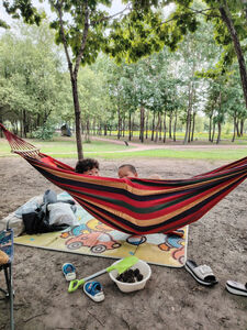 这款户外吊床真的绝了!! 最近入手的户外吊床简直是露营、郊游神器!拿到手就被它的品质惊艳到了,材质厚实又耐磨,承重能力超强,我和孩子两个人一起躺上去晃悠都完全没问题,安全感满满💪! 组装超简单,不用额外工具,按照说明书几分钟就能挂好。布料透气又亲肤,躺在上面吹着微风,简直不要太惬意~收纳起来体积小巧,还自带便携袋,塞进背包里一点不占地方,随时随地就能享受“躺平”快乐。 细节设计也超贴心,边缘加固处理,连接处的卡扣牢固又紧实,完全不用担心会松动。不管是放在后院树荫下,还是带去公园、河边,都氛围感拉满🌳!性价比超高,强烈推荐给喜欢户外的朋友们,绝对值得入手!