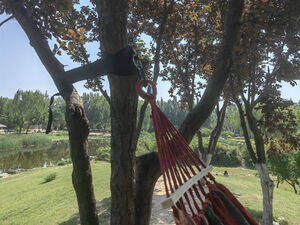 今天到槐林一游,打开包装,质量杠杠滴,我喜欢!系好吊床,躺在床上,绿色满眼,清风拂面,太惬意了!