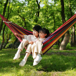 原始人吊床户外成人加厚荡秋千防侧翻摇床庭院掉床宿舍室内儿童网床 三人加厚木棍款+绑带+登山扣
