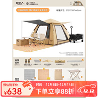 原始人帐篷户外露营便携式防雨加厚折叠自动野外露营装备全套野营过夜 一车拉走-钛黑胶两门两窗大全套