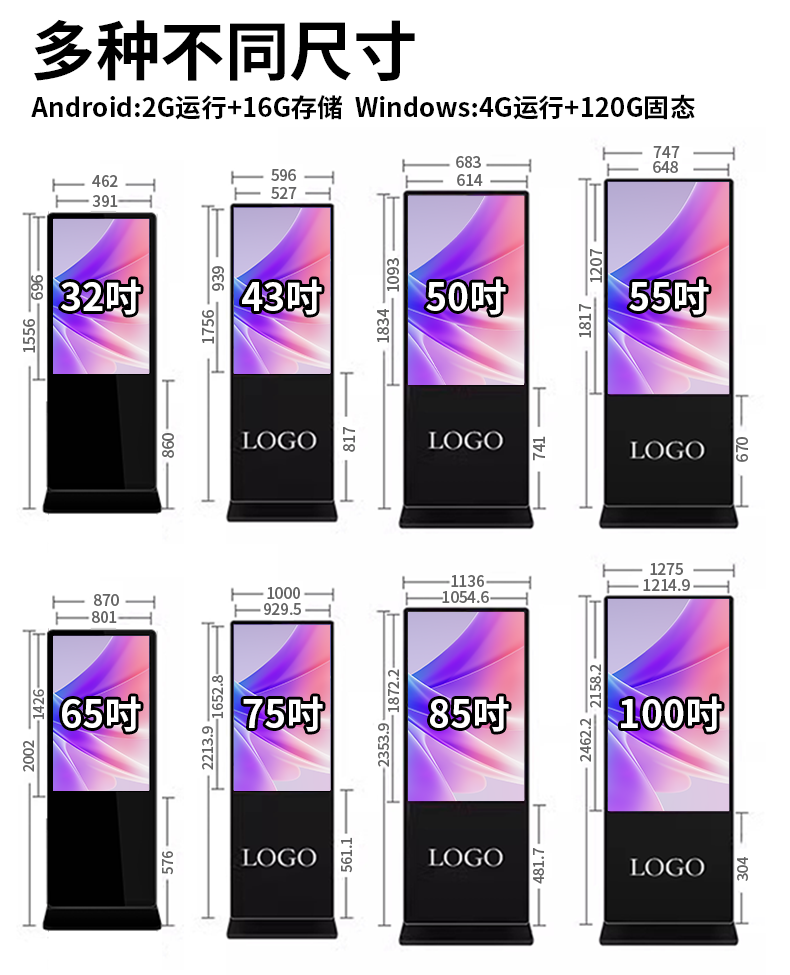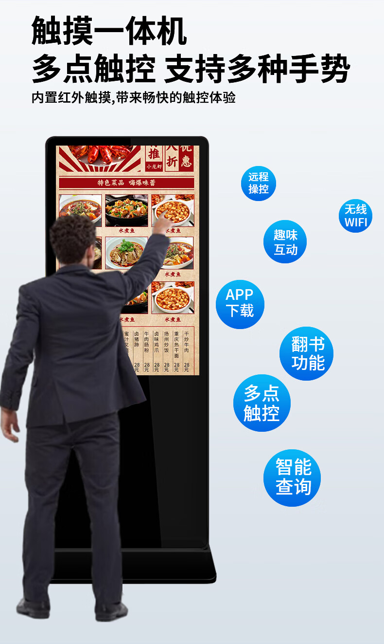 企多星 立式广告机显示屏网络智能分屏餐饮店铺商用竖屏播放器薄触摸多媒体餐饮落地查询一体机 100英寸 网络版 非触控 4K超清