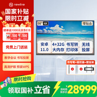 newline鸿合教学会议平板一体机触摸屏电视多媒体智能电子白板培训办公智慧黑板ON系列 98英寸安卓+壁挂架
