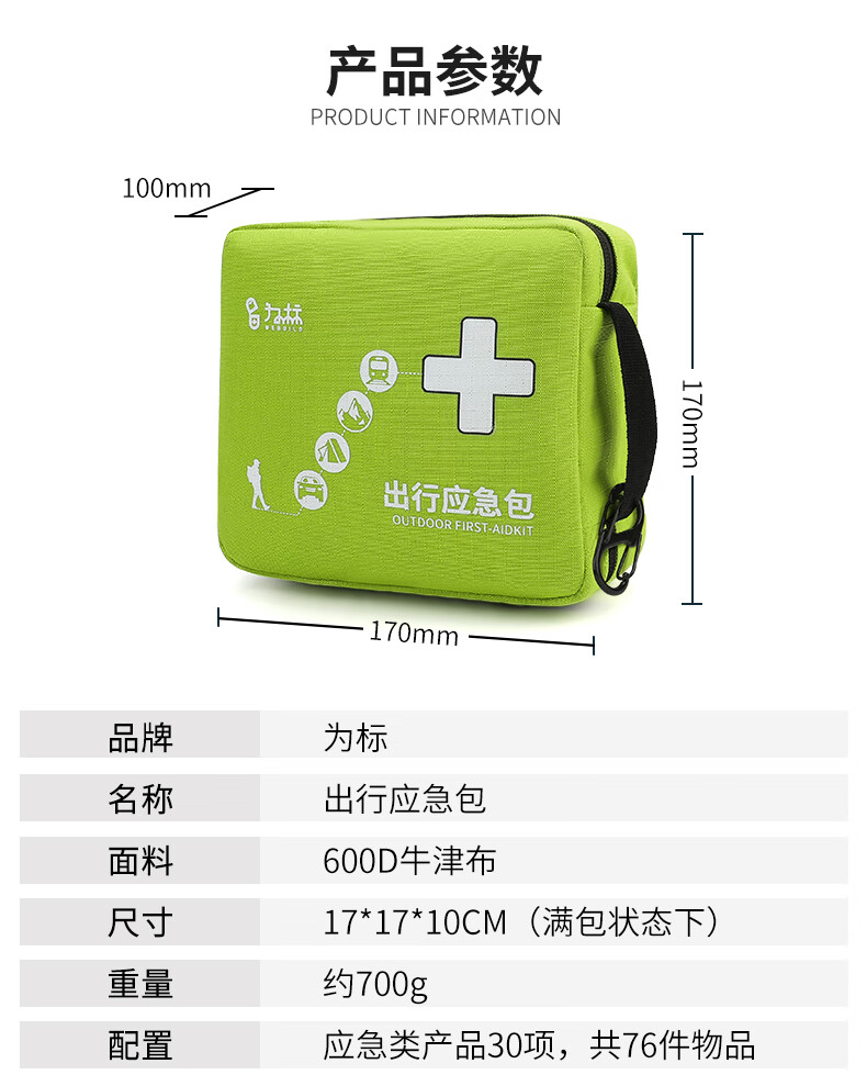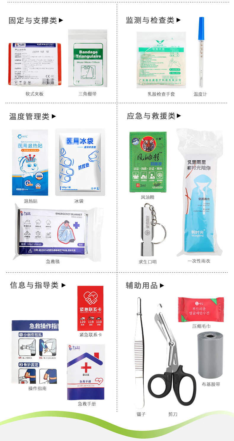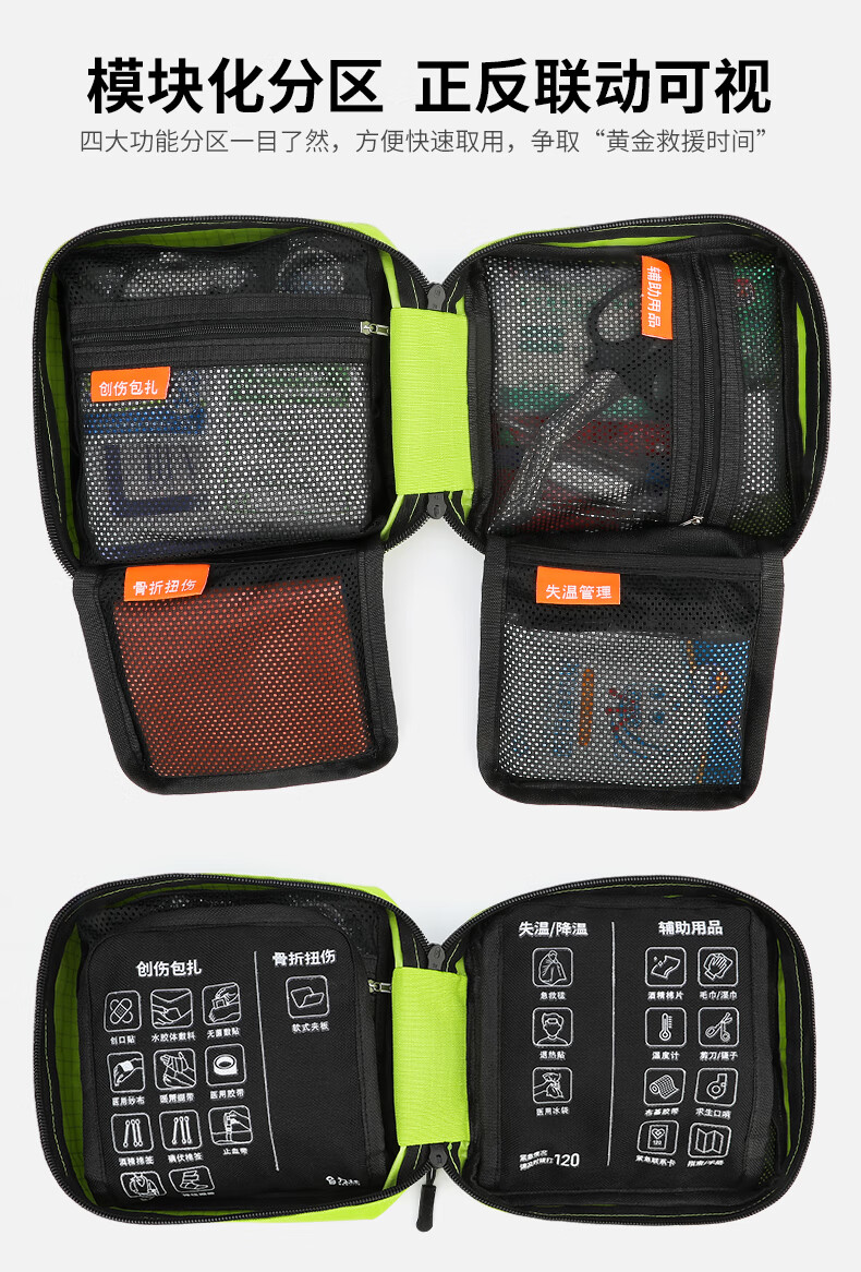 为标车载旅差居家出行轻量便捷式应急包耐磨防刮模块化分区户外急救包 出行应急包-标配(送森林地带驱蚊喷雾)