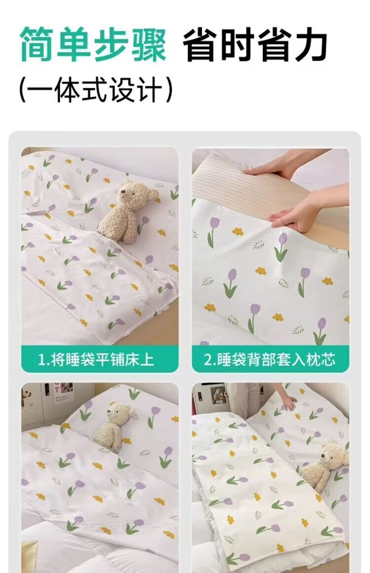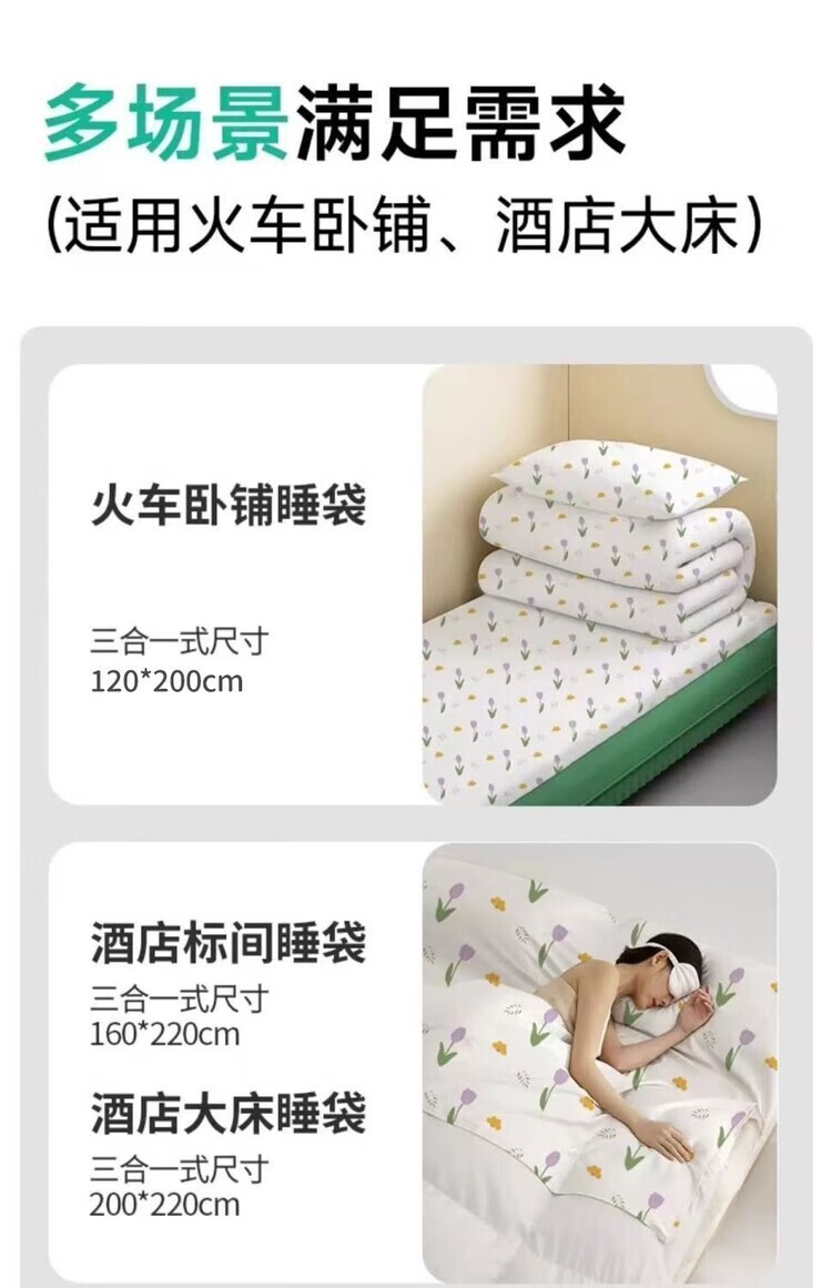 维诺亚酒店隔脏一次性睡袋出差旅行便携式加厚隔脏单双人免洗一体式睡袋 四层加厚【印花款】单人睡袋 压缩毛巾【1包】