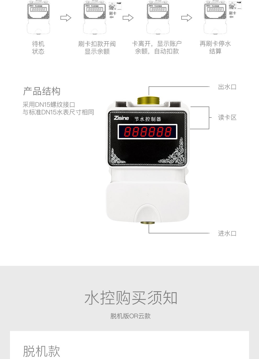 zisine智新ZS-JC600【分体式脱机】水控刷卡消费机 IC卡水控机 浴室刷卡设备 分体式水控机