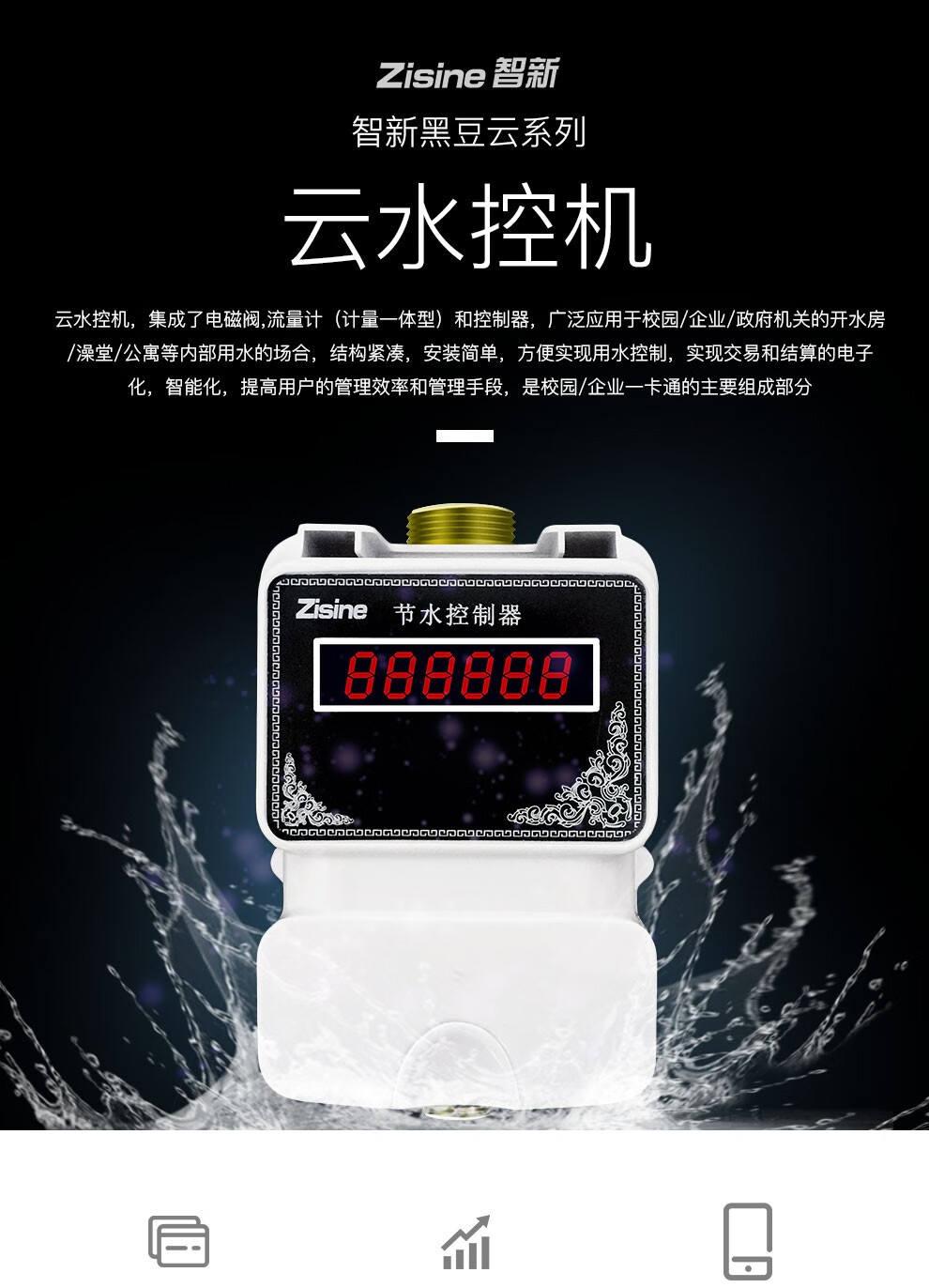 zisine智新ZS-JC660E-R【一体式水控机云款】刷IC卡学校宿舍单位公共浴室健身房水控系统 水控一体机