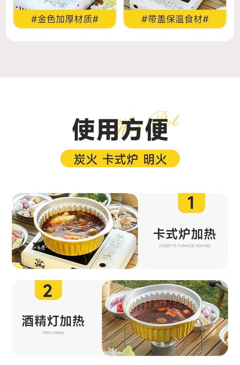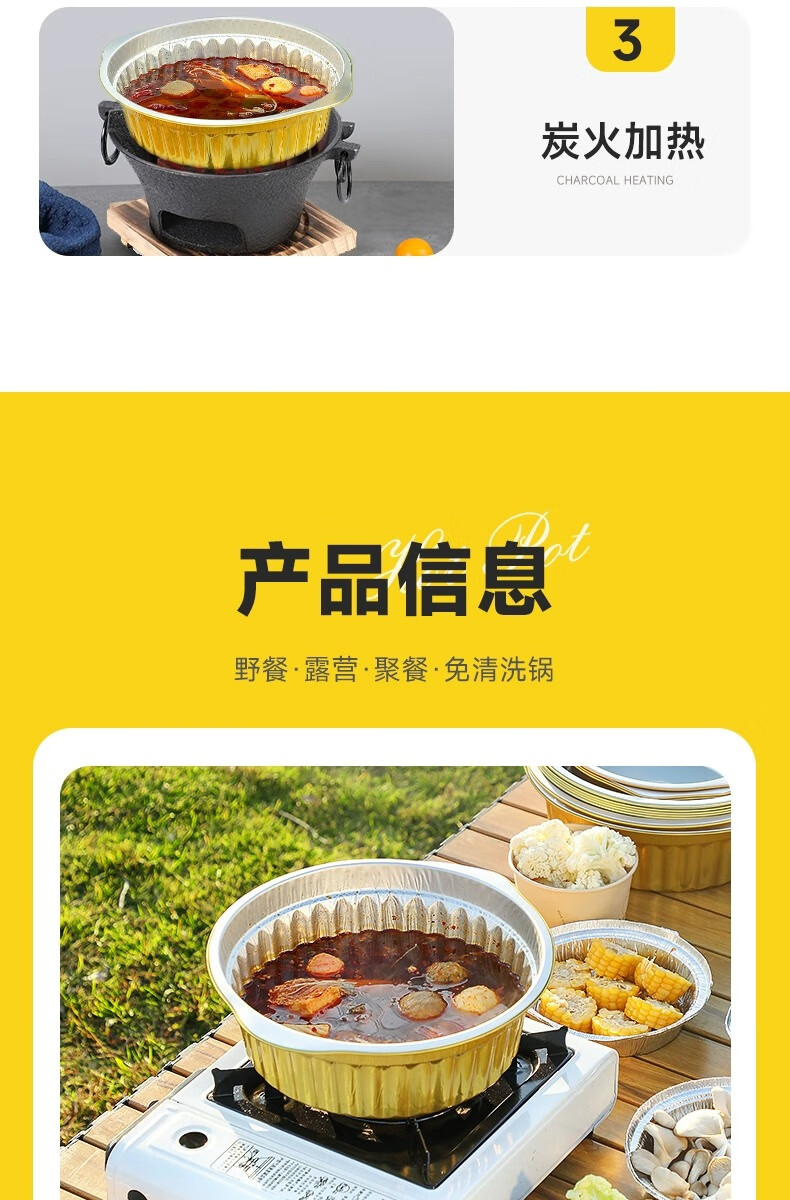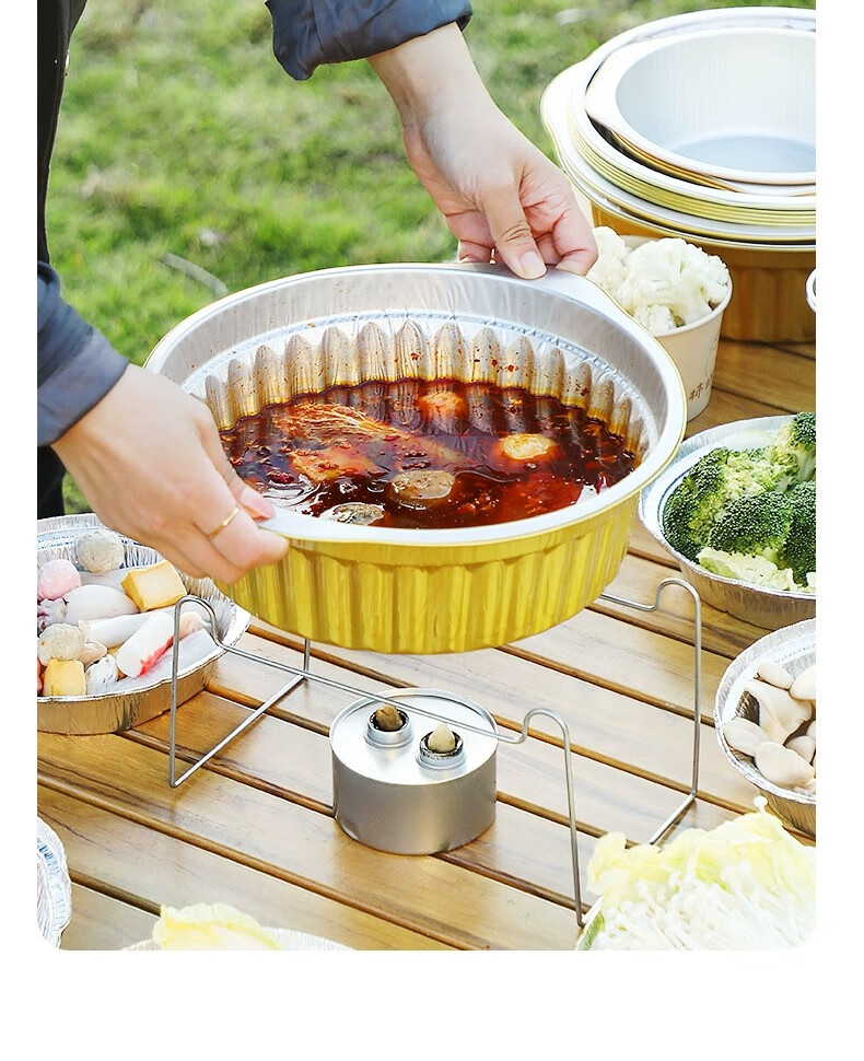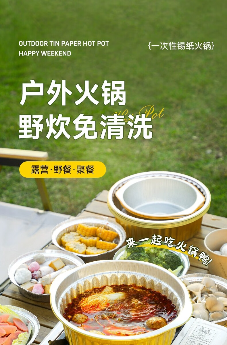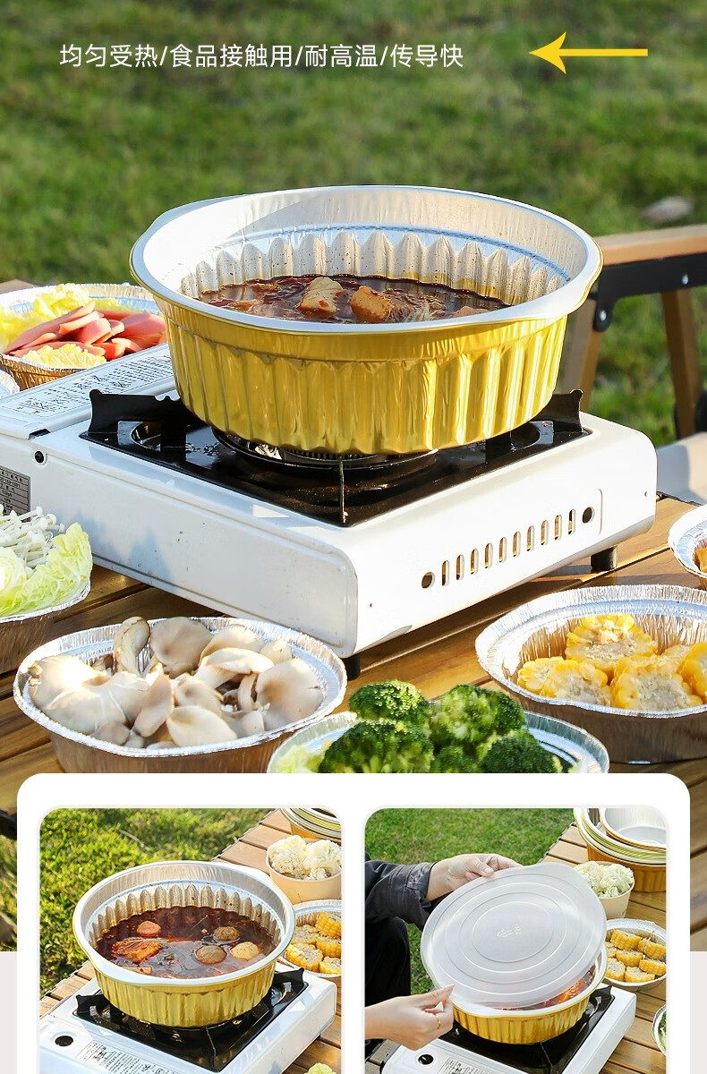 塔夫曼一次性火锅锅具免清洗露营野餐卡式炉用单人小火锅加厚铝箔锡纸锅 【3只1-2人】金色1430ml无盖