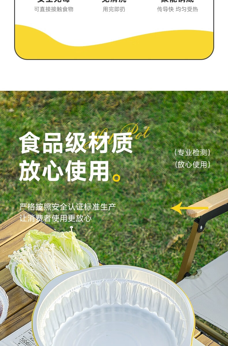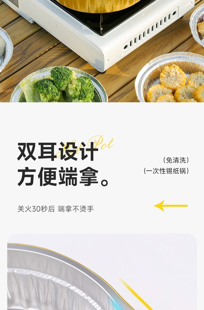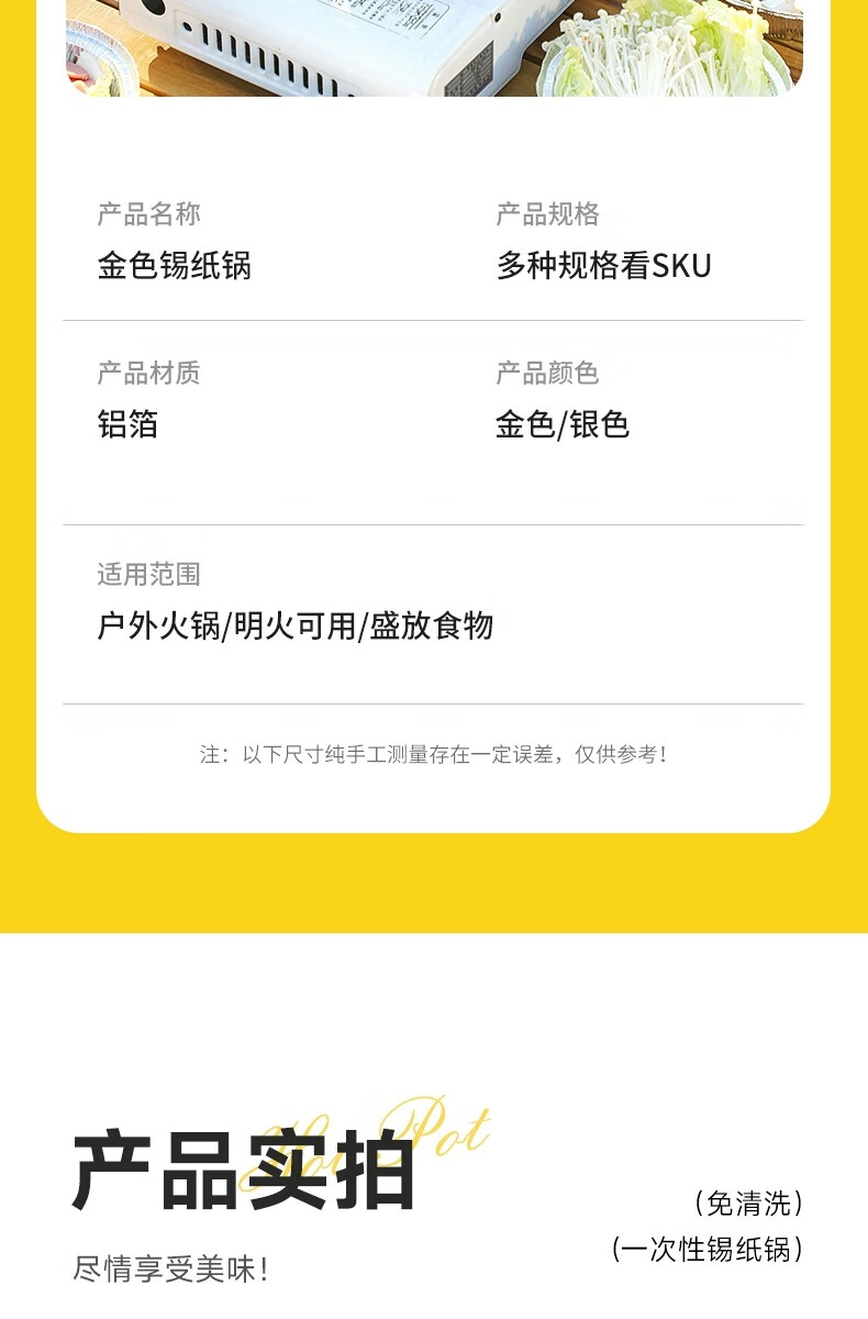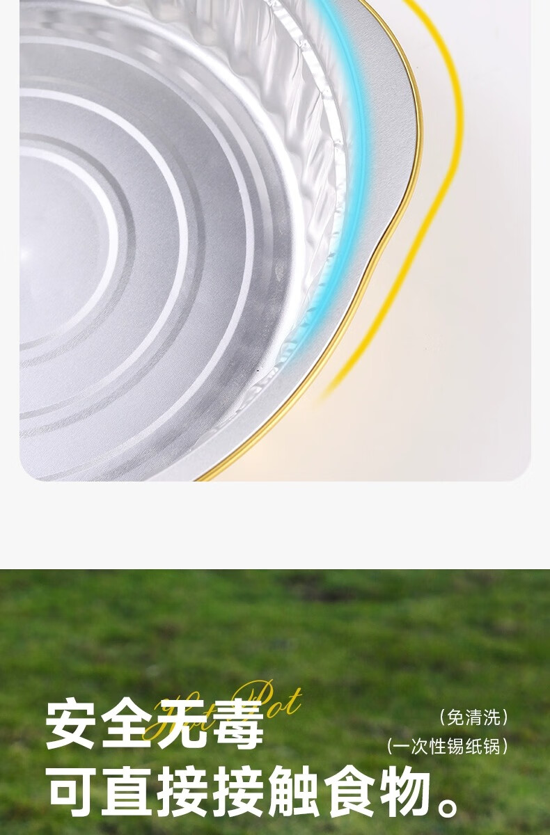 塔夫曼一次性火锅锅具免清洗露营野餐卡式炉用单人小火锅加厚铝箔锡纸锅 【3只1-2人】金色1430ml无盖