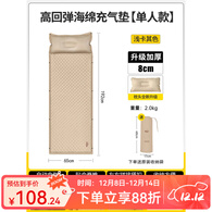 原始人露营充气床垫户外睡垫便携自动气垫床家用地铺野营帐篷地垫 单人款8cm自动充气垫【浅卡其】