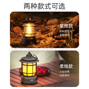 原始人露营灯户外灯照明马灯超长续航野营灯充电氛围灯户外帐篷灯 充电款星烛【濡雨黑】无极调光