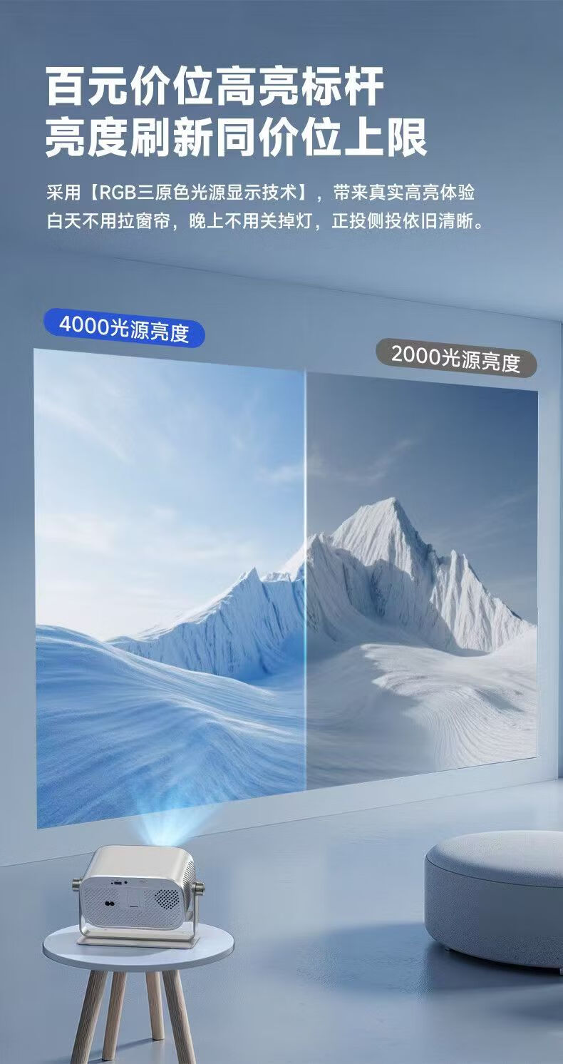 曼视威2025新款智能4k超高清投影仪家用客厅卧室家庭影院便携式强光护眼蓝牙手机投屏高亮办公 银色超清款+支架+抗光幕布 大牌品质+超清画质+30天免费试用