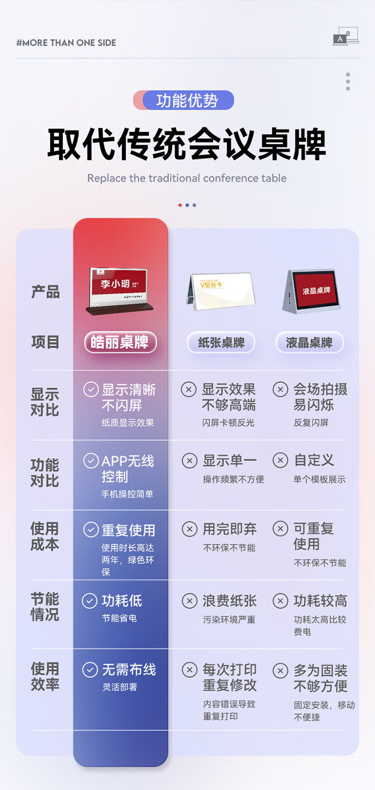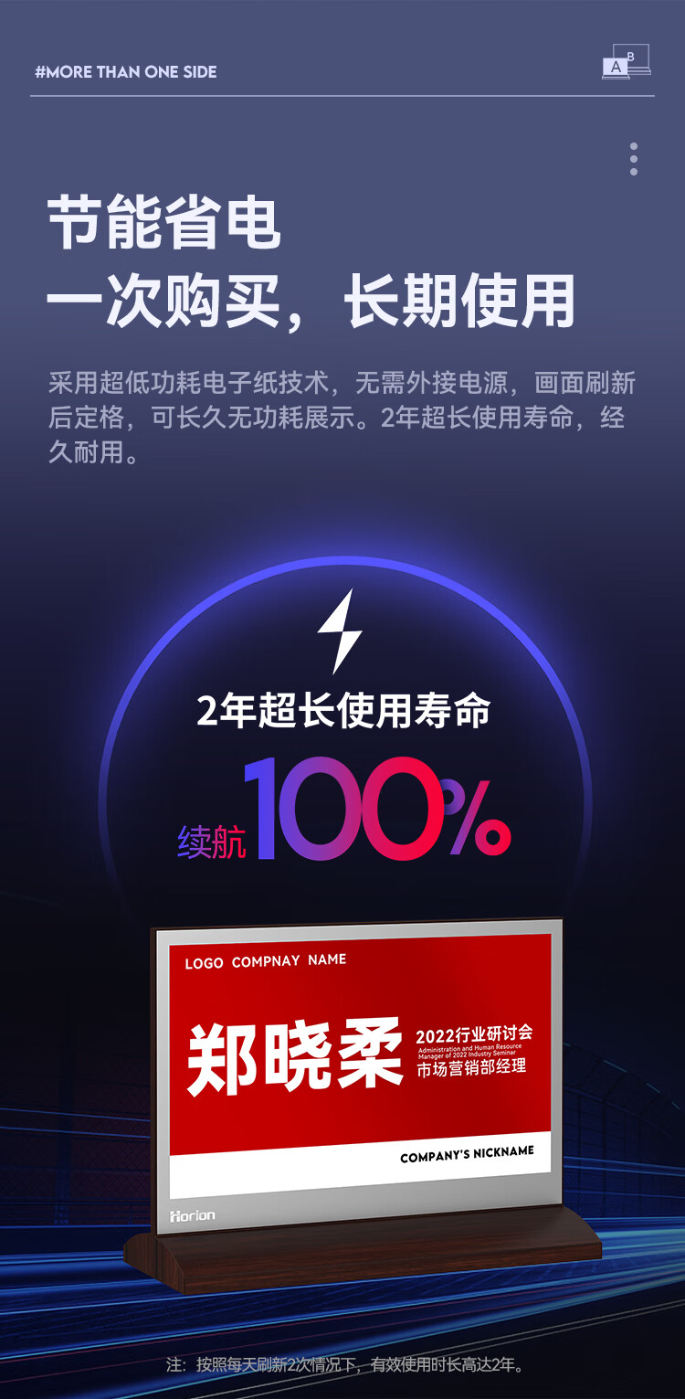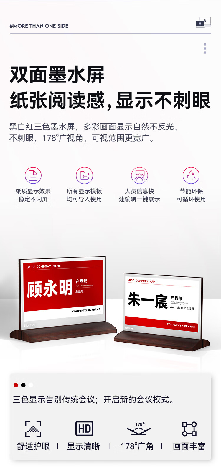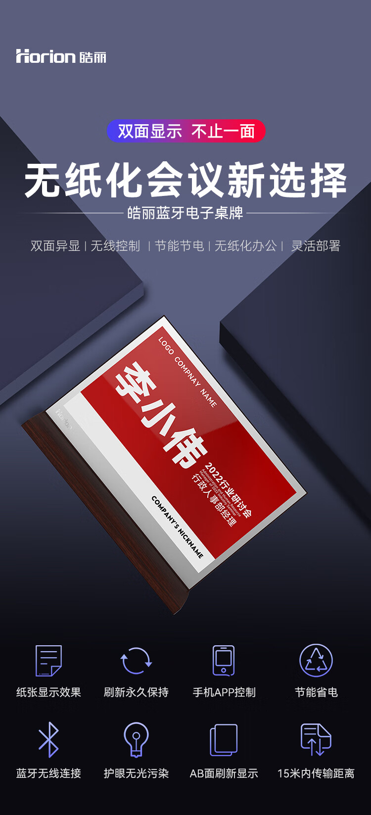 皓丽(Horion)7.4英寸电子桌牌蓝牙双面墨水屏台签展示卡牌号会议桌电子座位姓名牌HN-1 HN-1电子桌牌