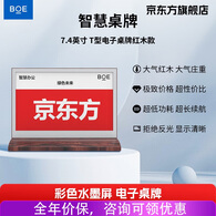 京东方BOE 墨水屏电子桌牌 多色双面显示器屏 台签展示会议室桌电子座位姓名卡号铭牌蓝牙NFC电池 7.4英寸黑白红三色T型双面红木色底座