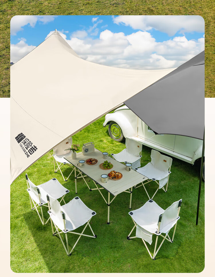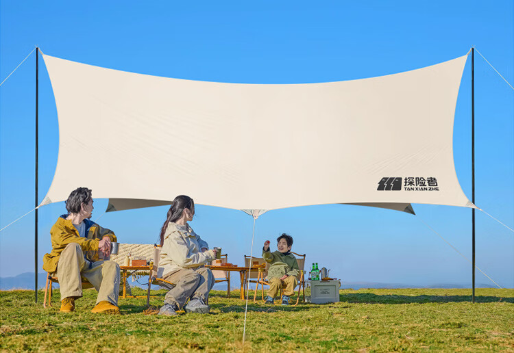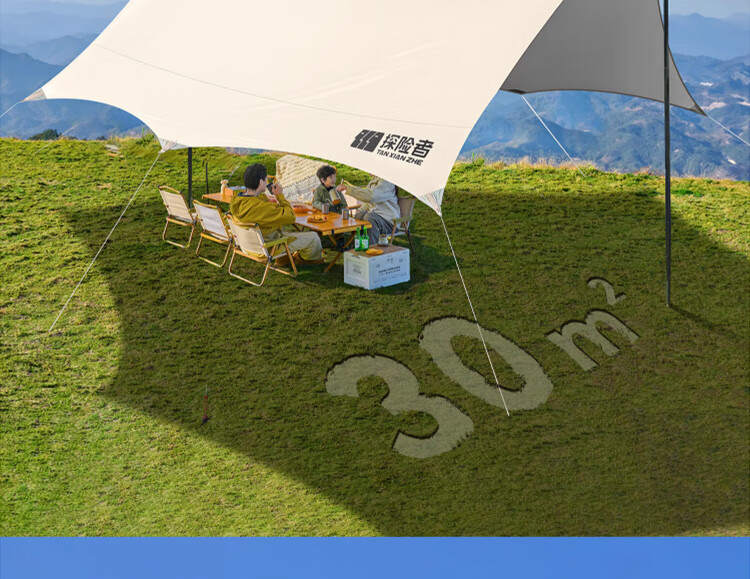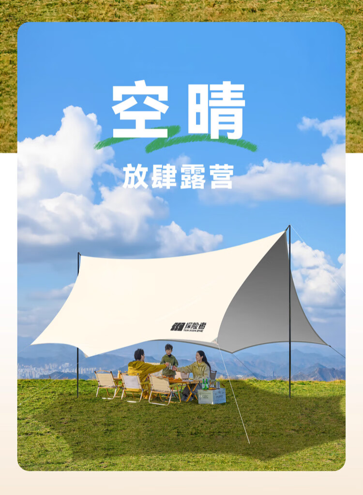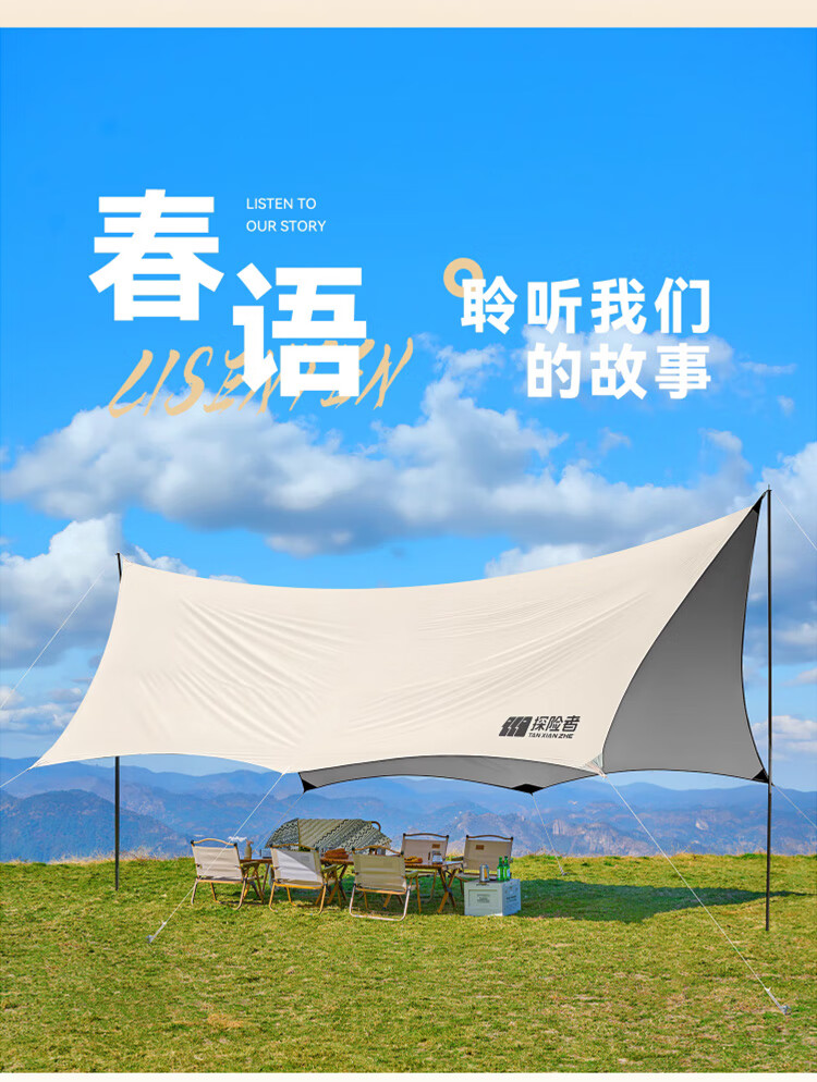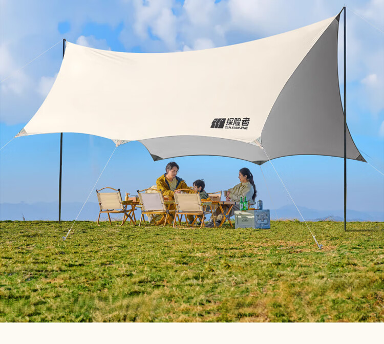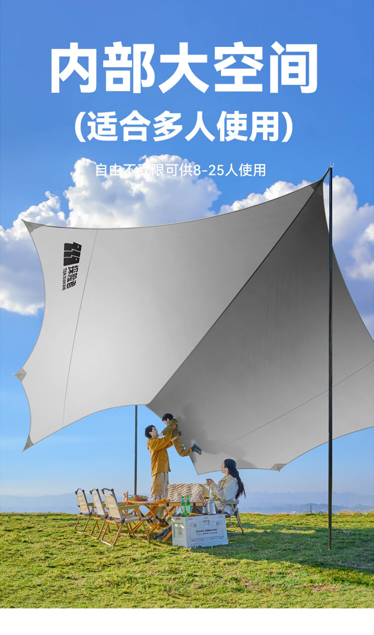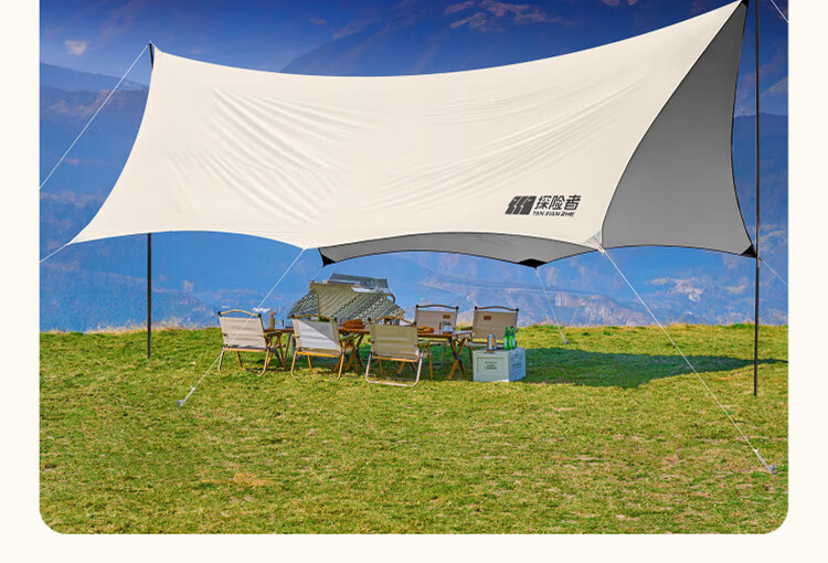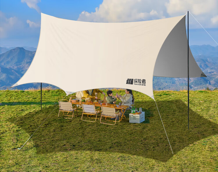 探险者(TAN XIAN ZHE)户外防晒天幕帐篷露营野营遮阳棚套装银胶八角蝶形天幕 【10-14人】22㎡霜奶白八角天幕