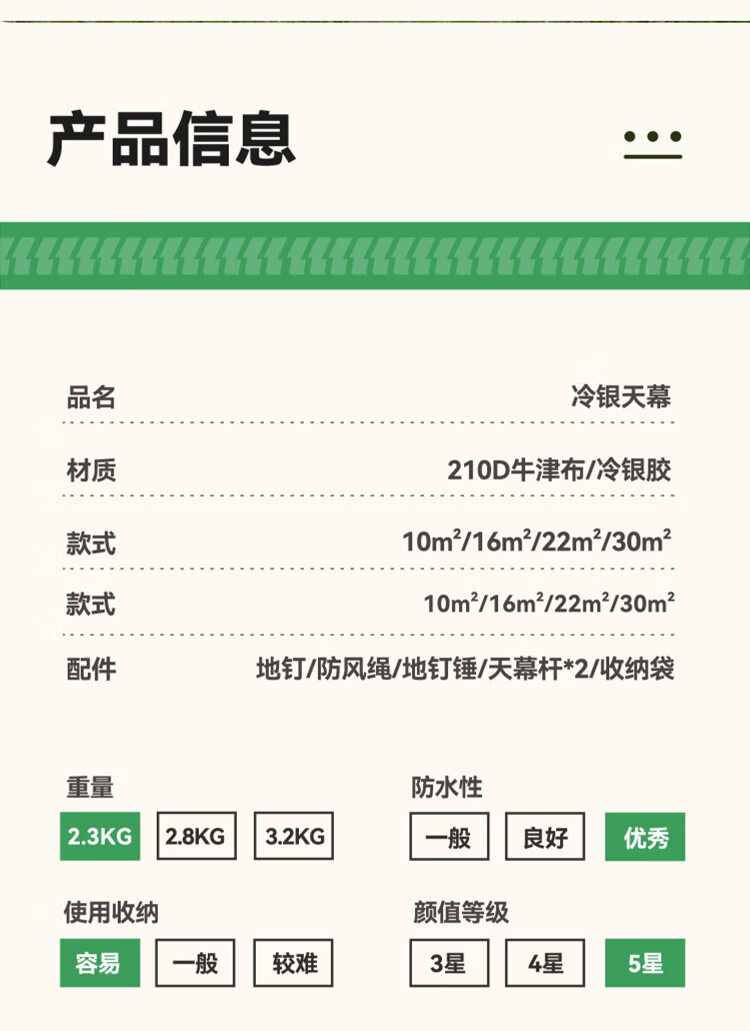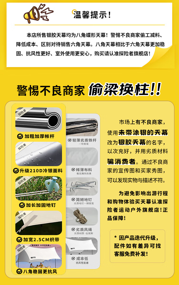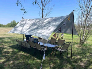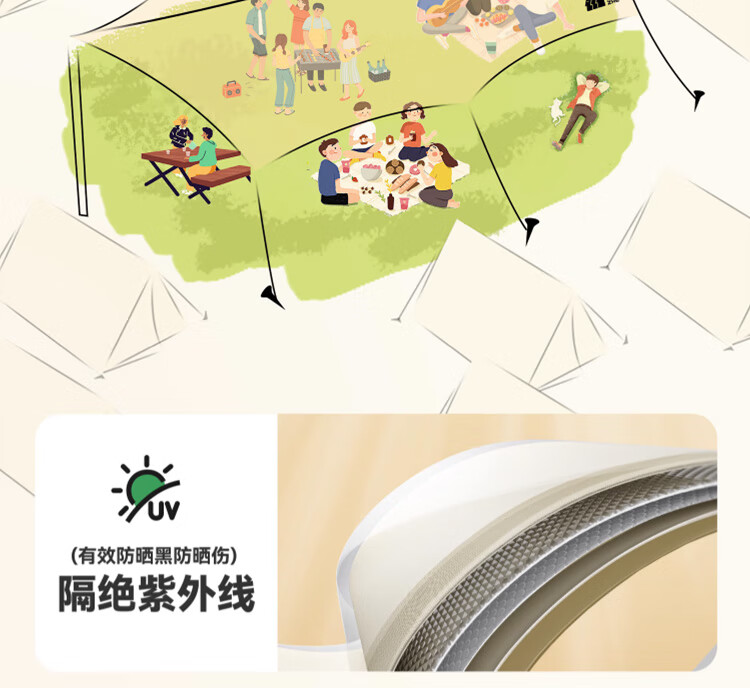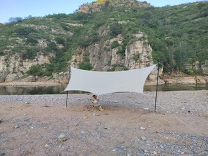 天幕非常大,颜色也是最流行的,质量非常好,很扎实,八角天幕拍照很漂亮,容纳十几个人没问题,非常凉快,客服云灿服务态度好