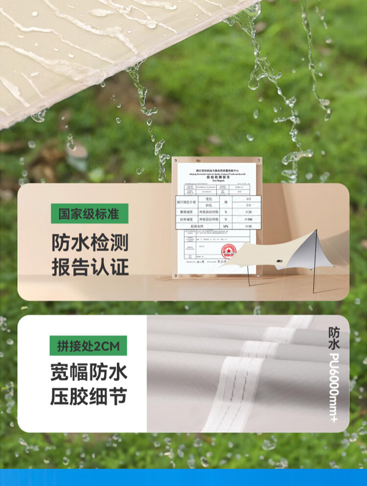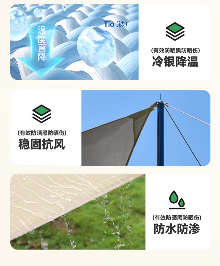 柏潮户外天幕便携加厚黑胶银胶野营野餐抗风防雨遮阳棚露营装备 卡其色 涂银款天幕防雨送全套工 方形长0.36*0.36米丨1人用