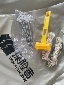 有手提袋,携带很方便,地钉小锤子也都很结实,开始期待露营体验了