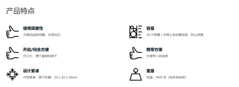 迪卡侬户外便携加压淋浴器 郊野徒步 黑色 均码