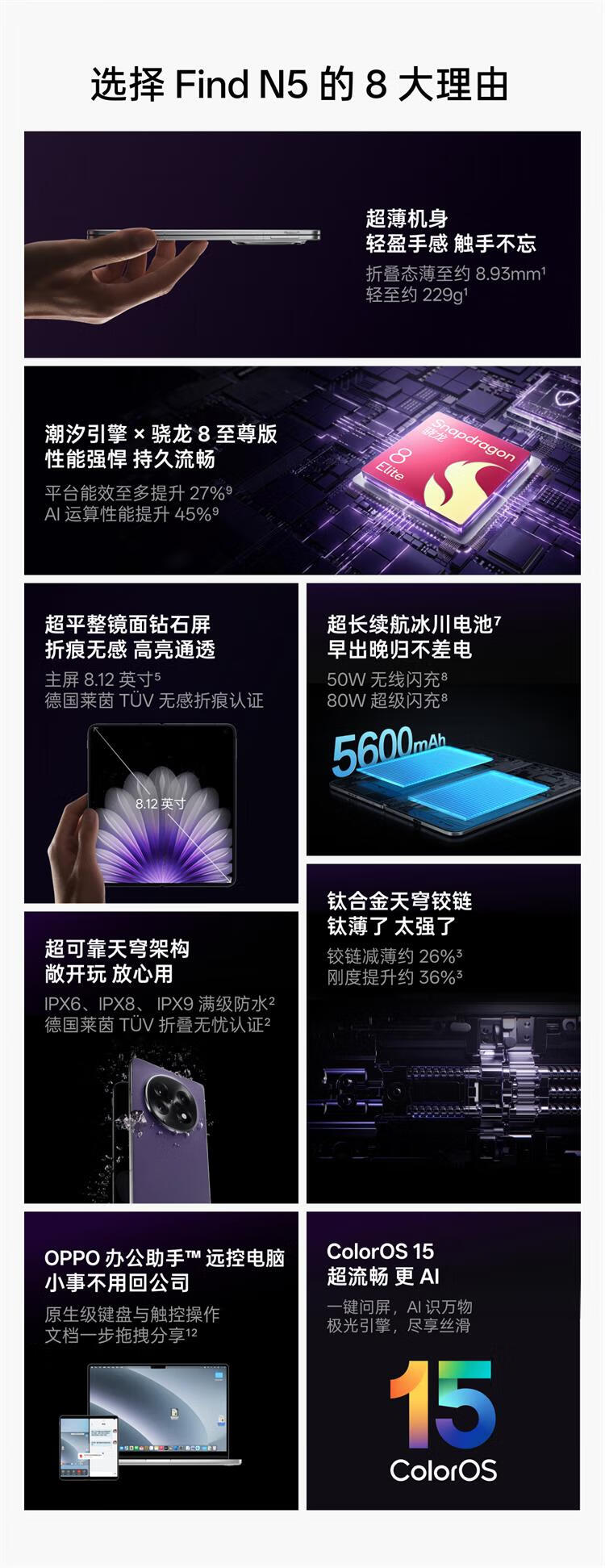 OPPOFind N5 折叠旗舰手机 8.93mm 超薄机身 超长续航冰川电池 全新骁龙8至尊版 ColorOS 15 玉白 12GB+256GB
