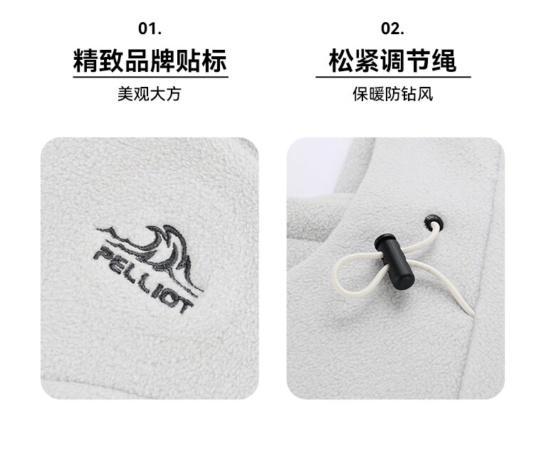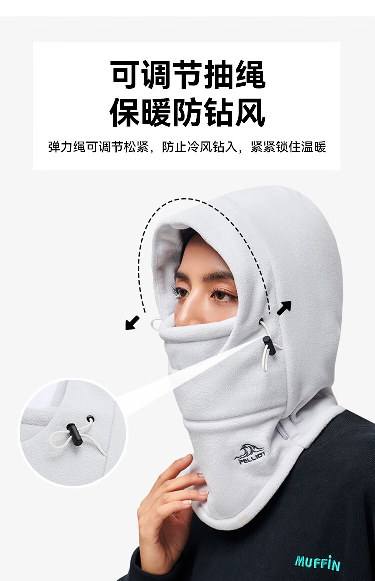 伯希和户外加厚抓绒帽子男女秋冬保暖护耳防风骑行运动帽登山骑行滑雪 【男】海鸥灰 均码